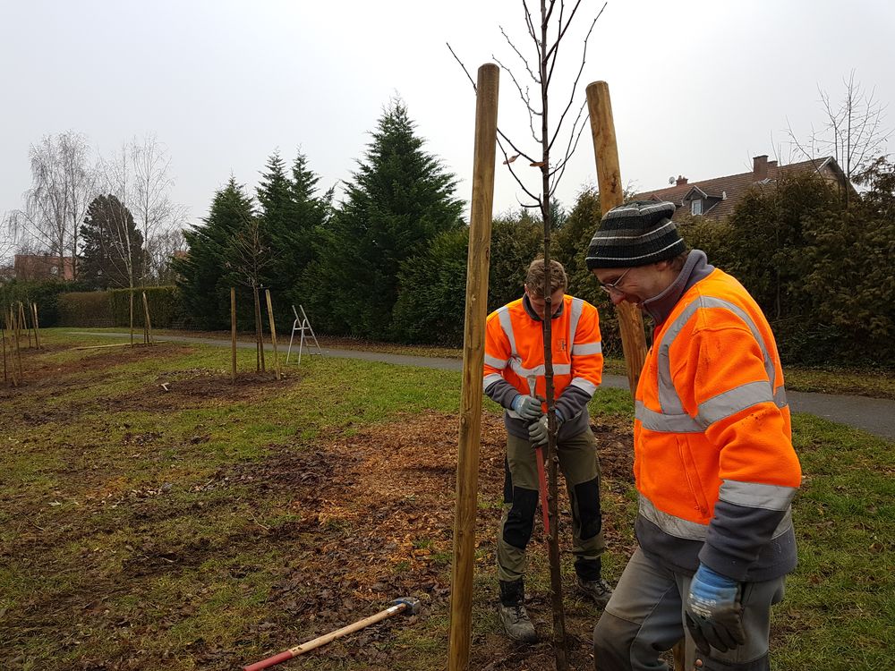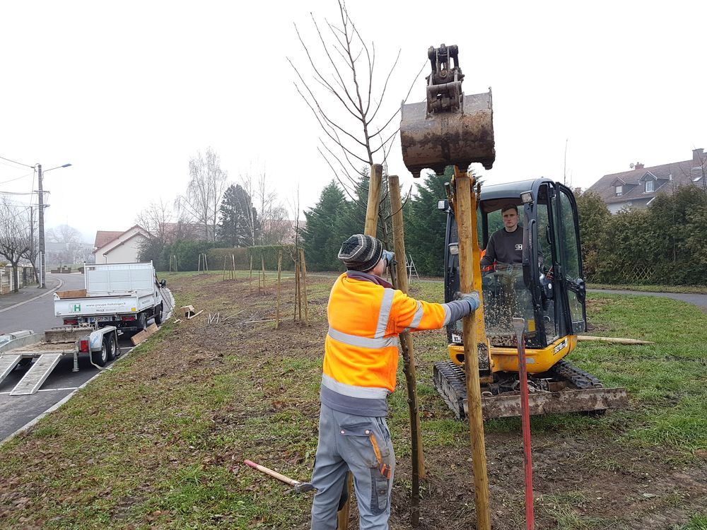 6 Copalmes d’Amérique (Liquidambar styraciflua) et 6 Tilleuls à petites feuilles (Tilia cordata) viennent remplacer les tilleuls, devenus dangereux, qui ont dû être abattus à la fin du mois de novembre dernier.