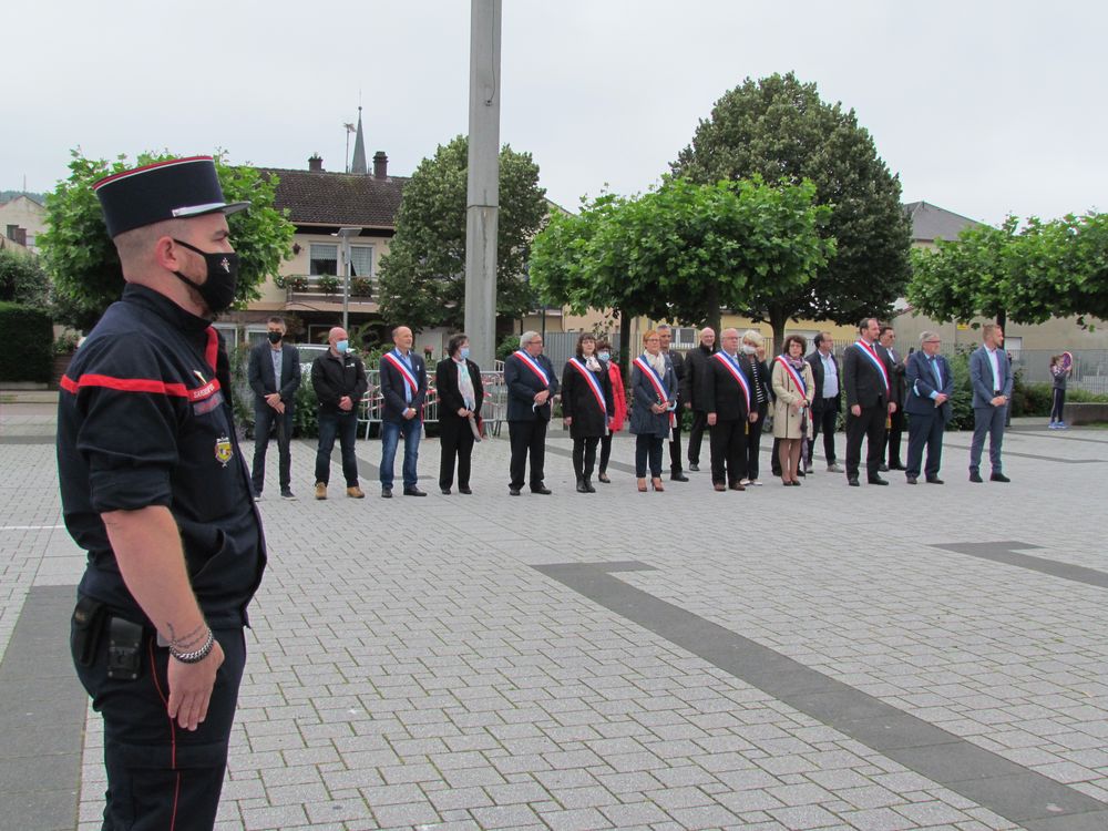 Sur les coups de 10h00, place De Wendel, en présence de M. le député Christophe Arend, de Mme. la vice-présidente du Conseil départemental Elisabeth Haag, de M. le conseiller départemental Constant Kieffer, de M. le conseiller régional Kévin Pfeffer et des élus du conseil municipal de Stiring-Wendel, les sapeurs-pompiers ont procédé au lever des couleurs, avant que l’harmonie municipale n’interprète la Marseillaise.