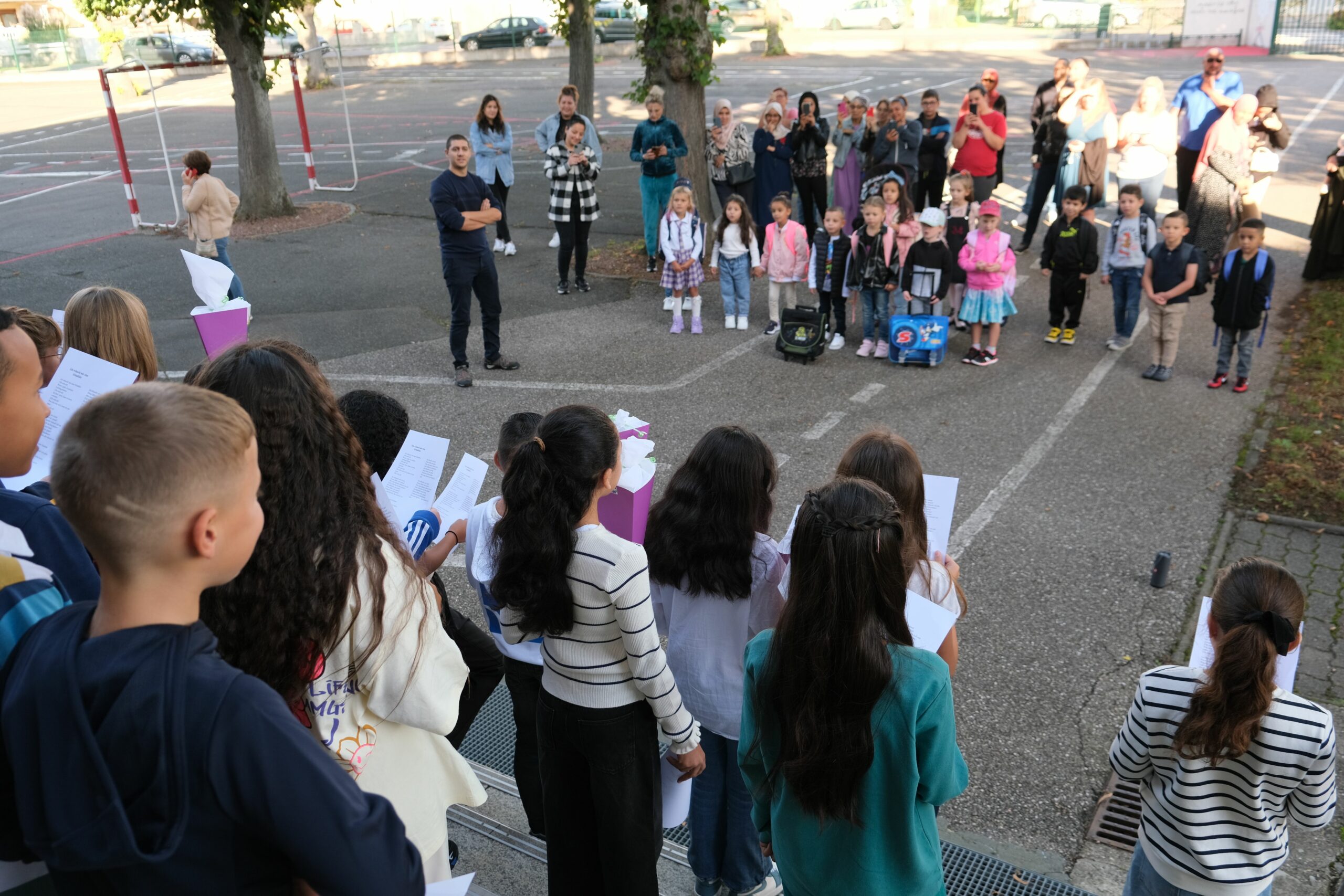 A l’école du Vieux-Stiring les « grands » de CM2 ont accueilli les CP avec un chant en allemand.