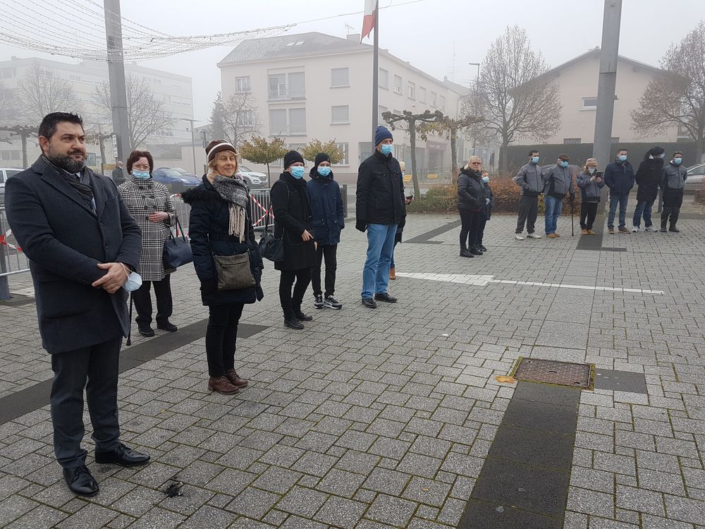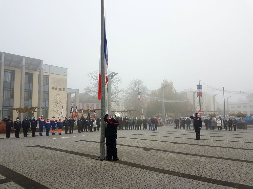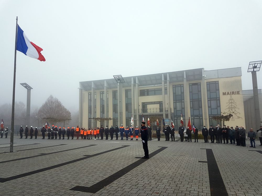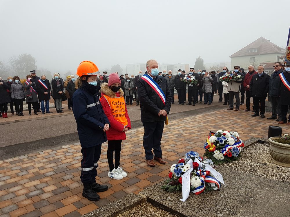 La commémoration a débuté sur la place de Wendel par la levée des couleurs en présence de Madame la vice-présidente du Conseil départemental Elisabeth Haag, de Monsieur le conseiller régional Kévin Pfeffer, d’élus du conseil municipal, de porte-drapeaux, de représentants d’associations, de sapeurs pompiers, de la police, des cadets de la sécurité du Collège Untersteller, de l’harmonie municipale et de nombreux Stiringeois.