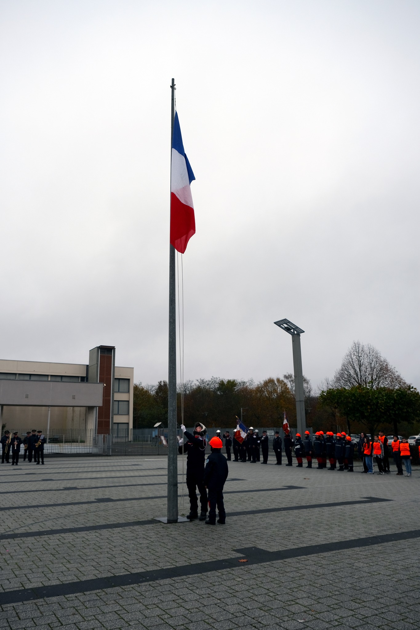 La commémoration a débuté sur la place de Wendel par la levée des couleurs en présence de Madame la vice-présidente du Conseil départemental Elisabeth HAAG, d’élus du conseil municipal, de porte-drapeaux, de représentants d’associations et d’associations patriotiques, des sapeurs pompiers et jeunes sapeurs-pompiers, de secouristes de la protection civile, de la police nationale et municipale, des cadets de la sécurité du collège Untersteller, de l’harmonie municipale et de nombreux Stiringeois.
