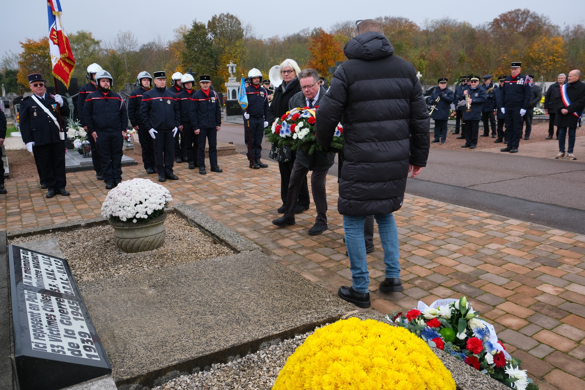 La matinée s’est poursuivie au cimetière du centre avec un dépôt de gerbes au pied du Monuments aux Morts.