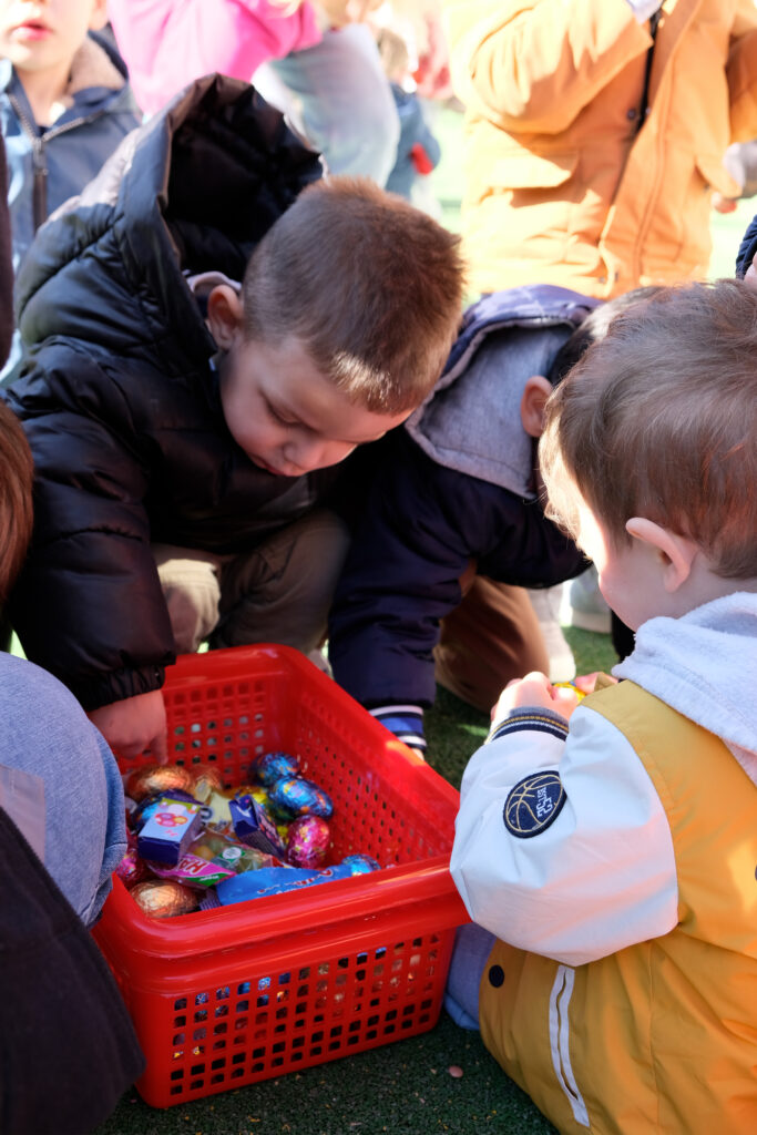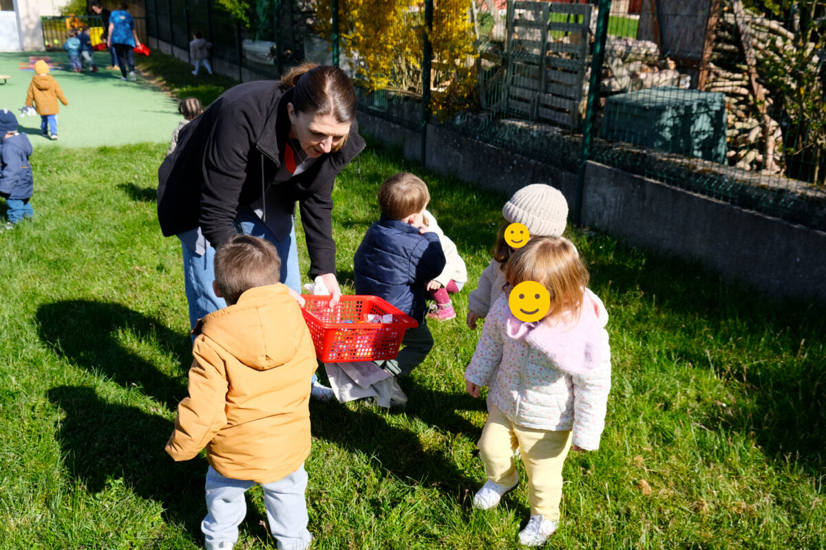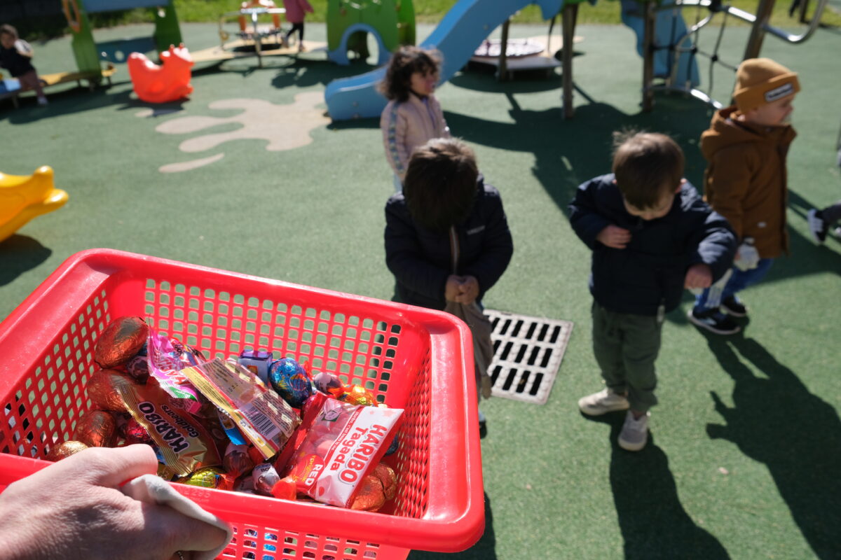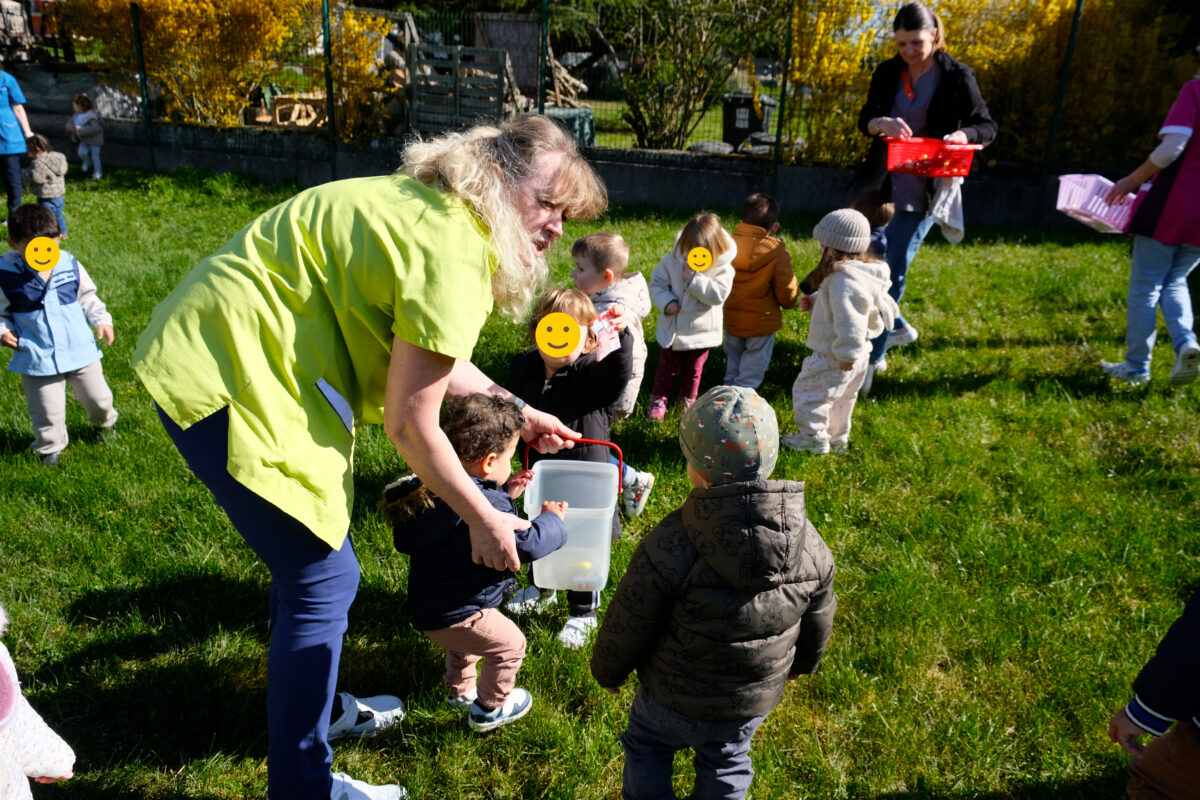 Dans la cour, le lapin de Pâques avait caché de nombreux bonbons et chocolats, pour le plus grand plaisir des petits.