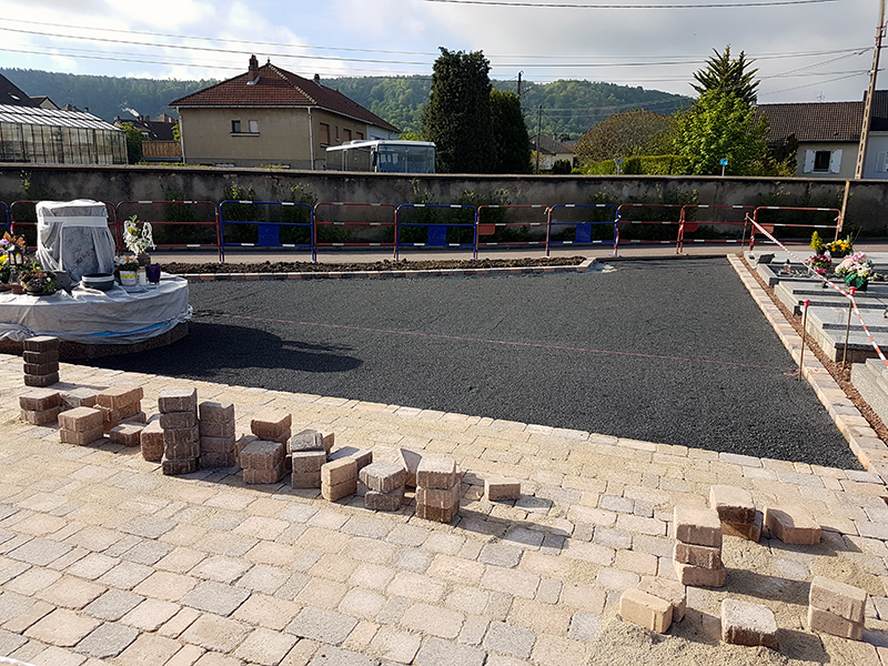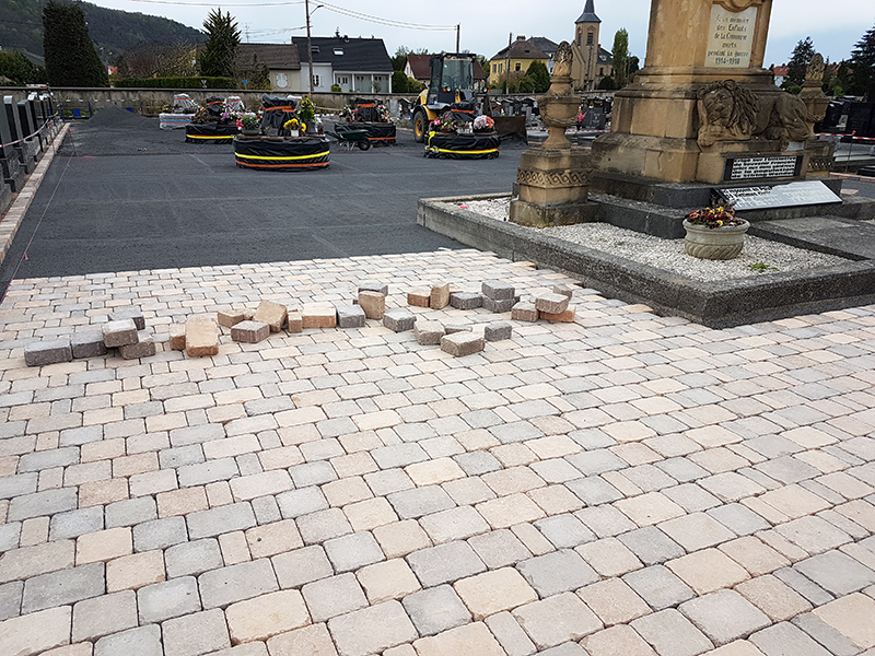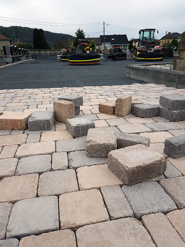 La pose de pavés sur une surface de 530m² aura duré 5 semaines. Un chantier mené à bien par l’entreprise TPDL de Sarreguemines.