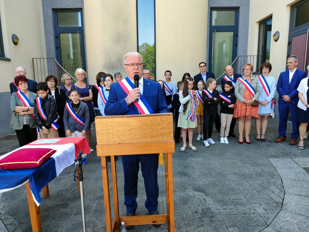 Le maire, Monsieur Yves Ludwig a accompli le devoir de mémoire accompagné des élus du conseil municipal et des membres du conseil municipal des jeunes.