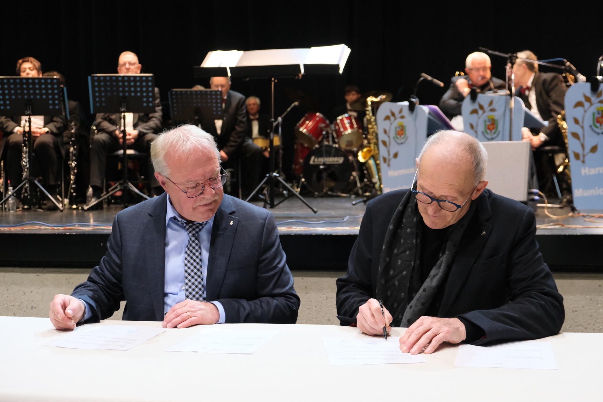 A la fin du spectacle le Conservatoire communautaire de Musique et de Danse Forbach Porte de France représenté par le vice-président de la Communauté d’Agglomération de Forbach Porte de France Honoré Greff et l’Harmonie municipale représentée M. le Maire de Stiring-Wendel ont signé une convention de partenariat.