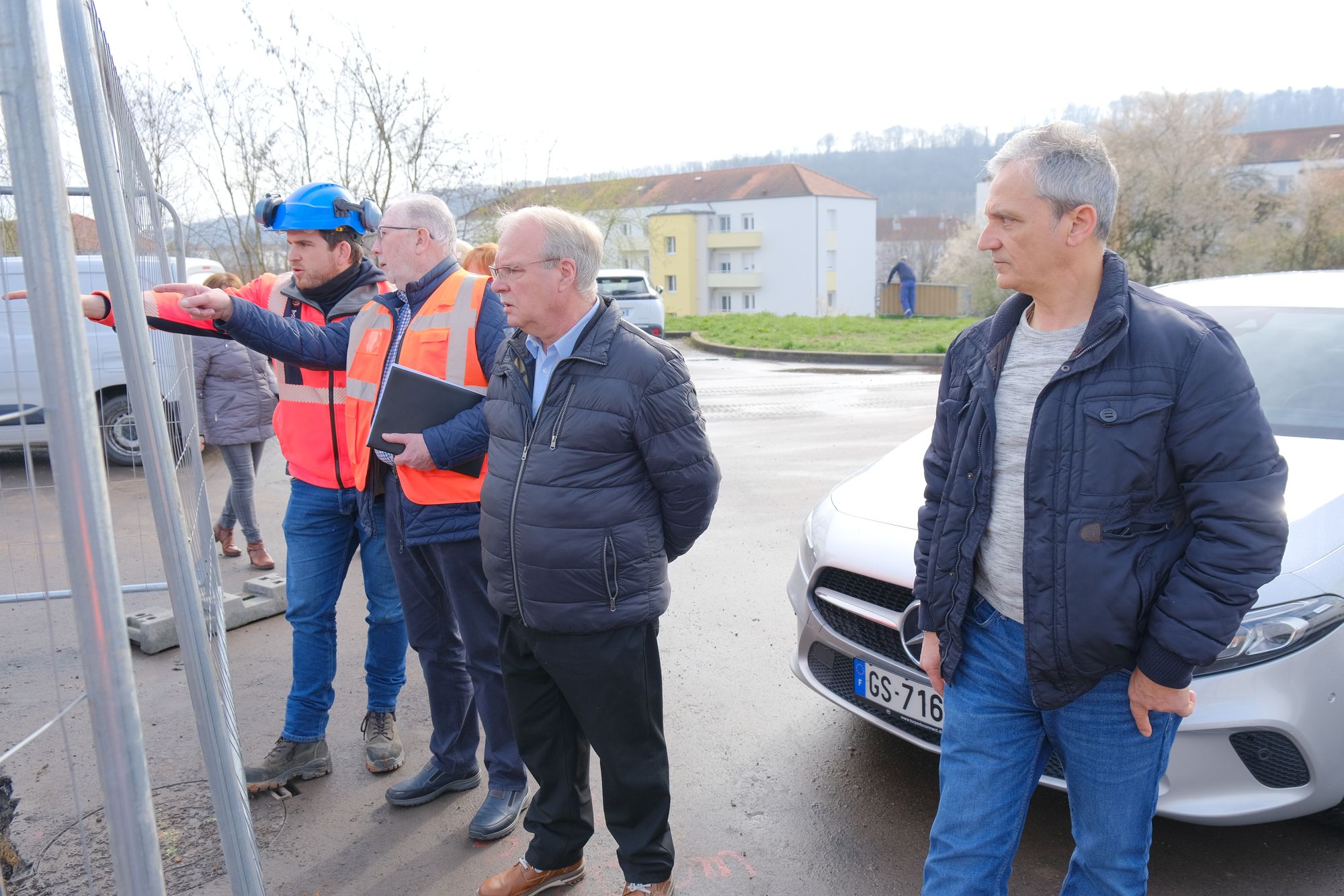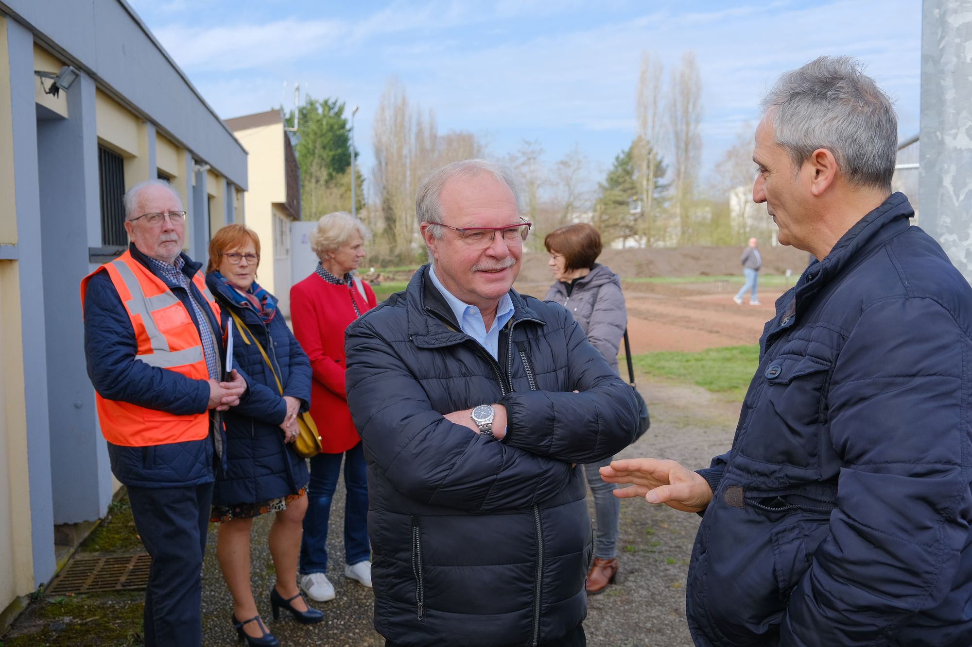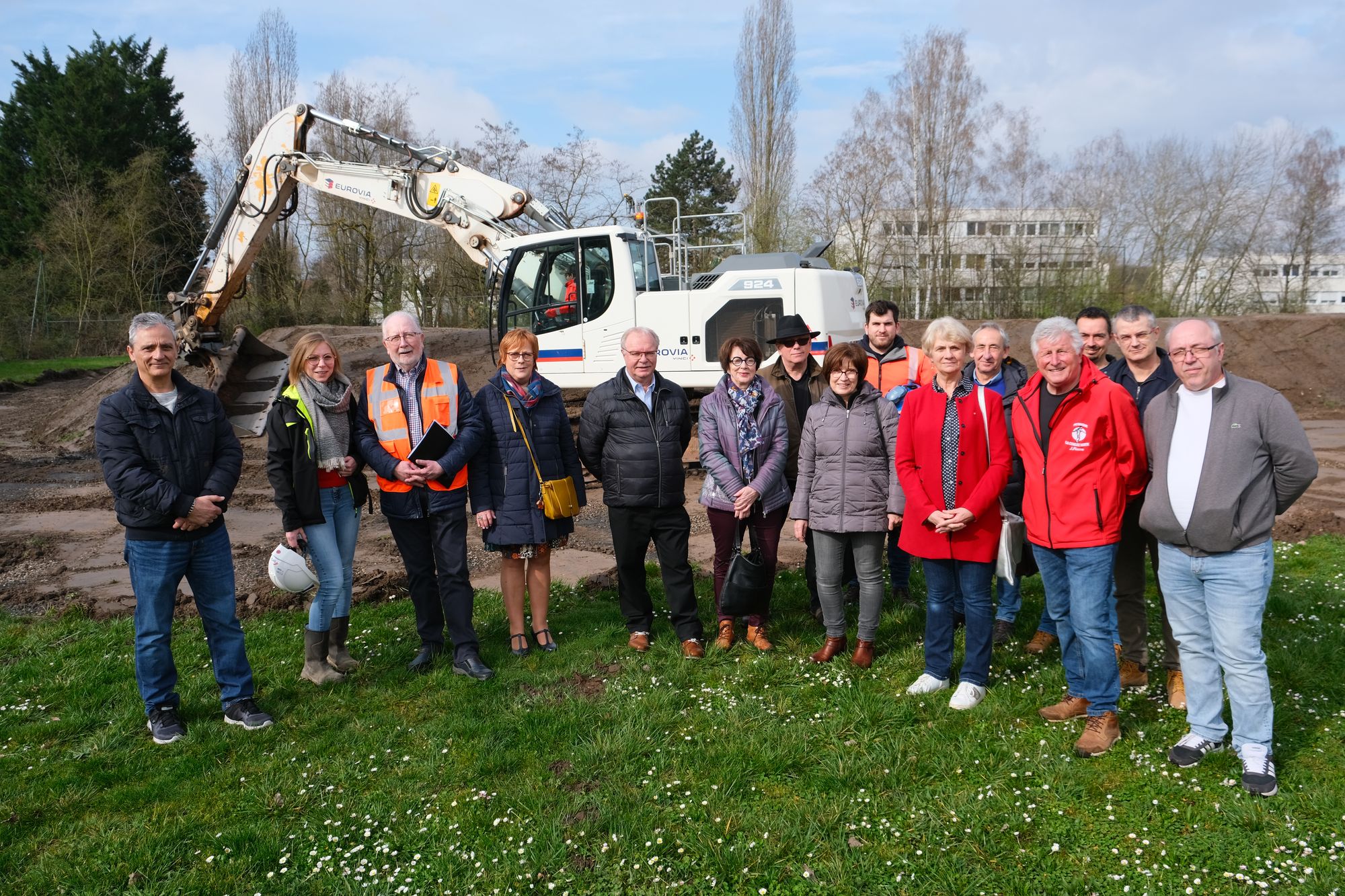 Le maire Yves LUDWIG est venu assister au démarrage du chantier accompagné de la première adjointe et vice-présidente du conseil départemental Elisabeth HAAG, des adjoints à la vie associative et aux travaux Brigitte SOTGIU et Yannick LE BLANC ainsi que des conseillers municipaux délégués, Grégoire LEININGER, Suzanne MULLER et Eugénie DENNINGER.