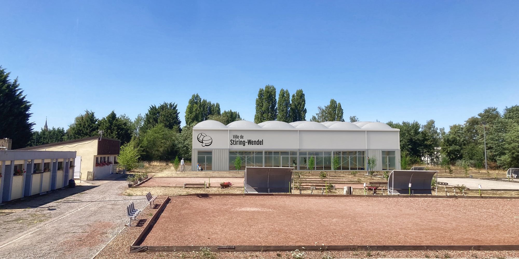Depuis lundi, l’entreprise EUROVIA est à l’œuvre pour décaisser l’ancien terrain de football de l’ASSH. Occupé par le club de Pétanque « la Coulée Verte » depuis plusieurs années il va accueillir une halle couverte de 16 pistes, conçue par l’architecte Fausto VIT, sur une surface totale de 1 133 m².