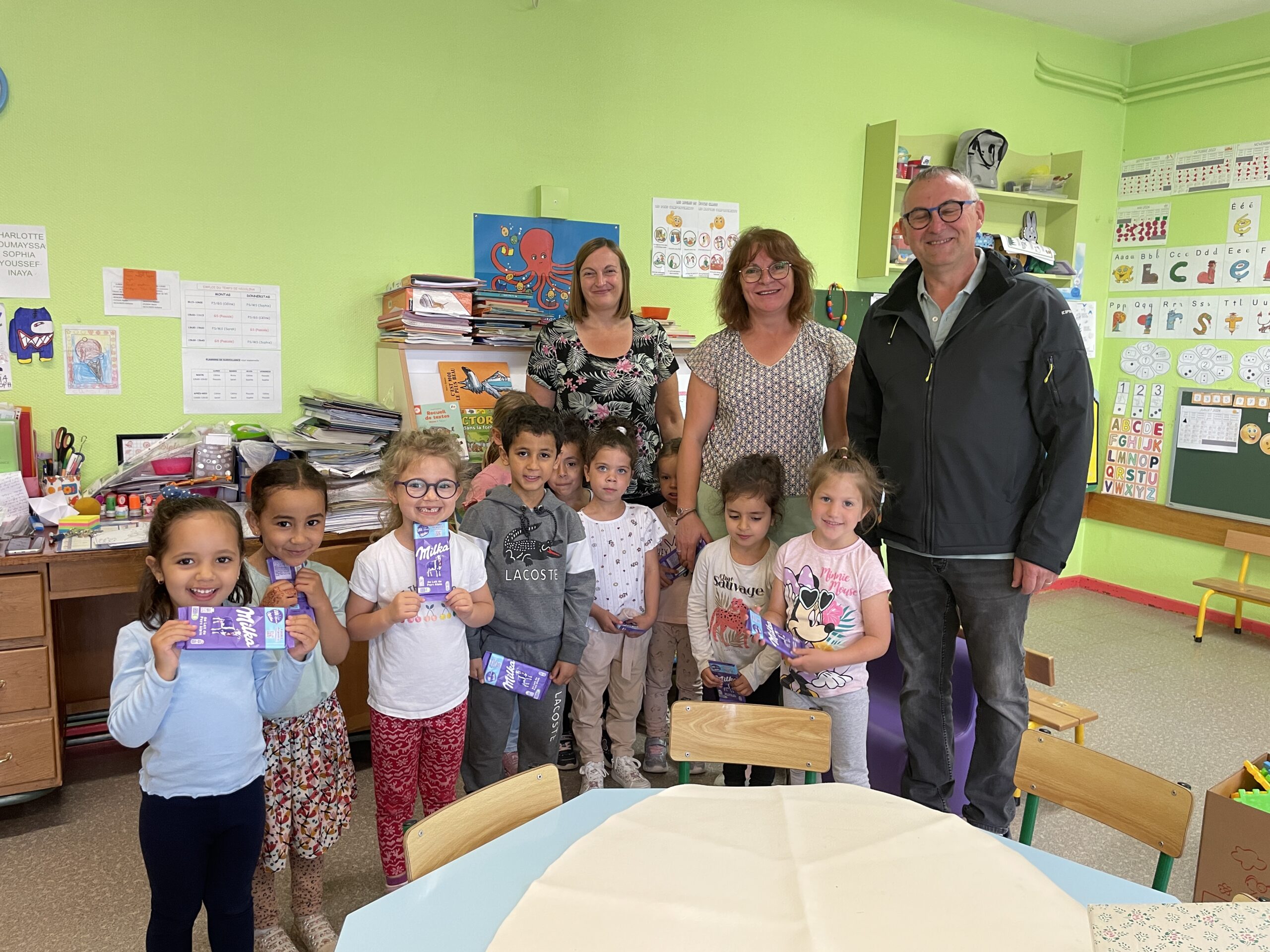 La tradition à Stiring-Wendel, est de gâter les écoliers de la ville avec la distribution de tablette de chocolat. Mardi 2 juillet, les élus du conseil municipal de Stiring-Wendel se sont rendus dans les 4 écoles de la commune à la rencontre des élèves de la maternelle jusqu’au Cm2.