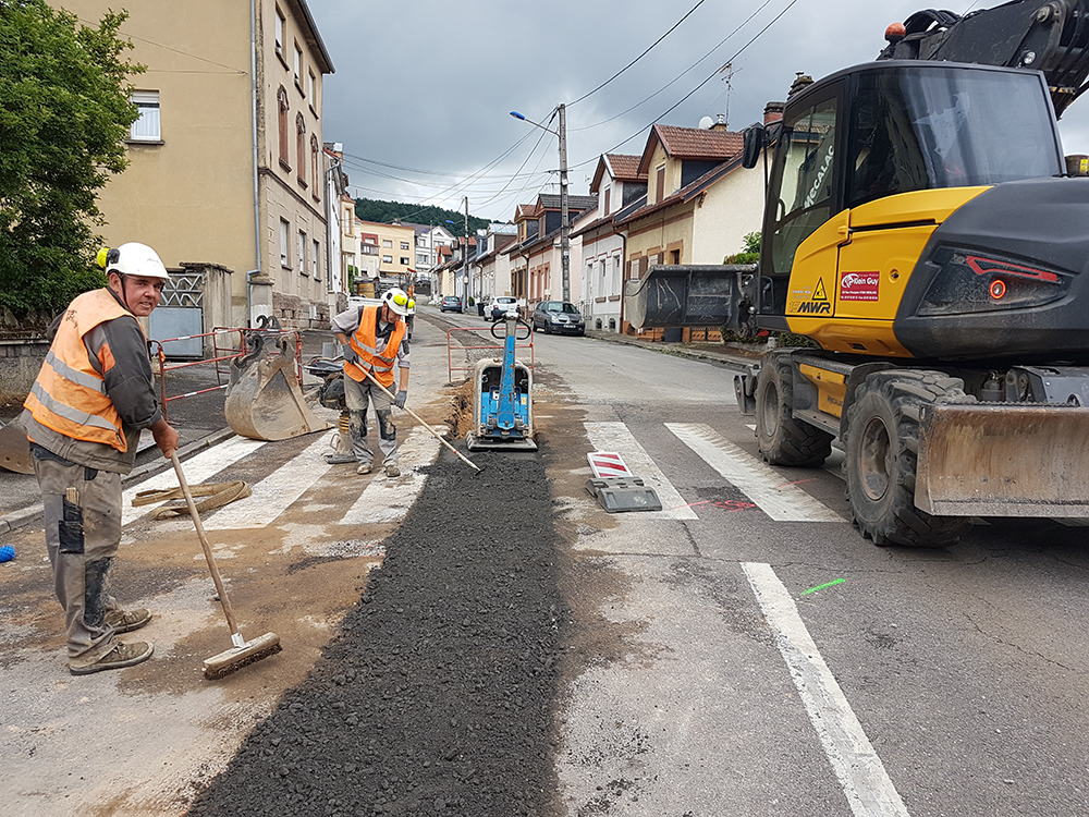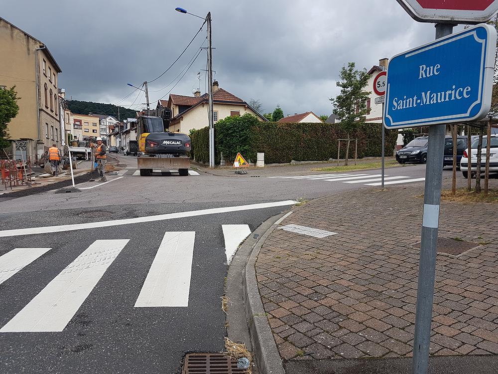sur le tronçon entre la Route Nationale et le Boulevard Saint-Joseph où l’entreprise de Travaux Publics Guy KLEIN procède au renouvellement du réseau d’eau potable.