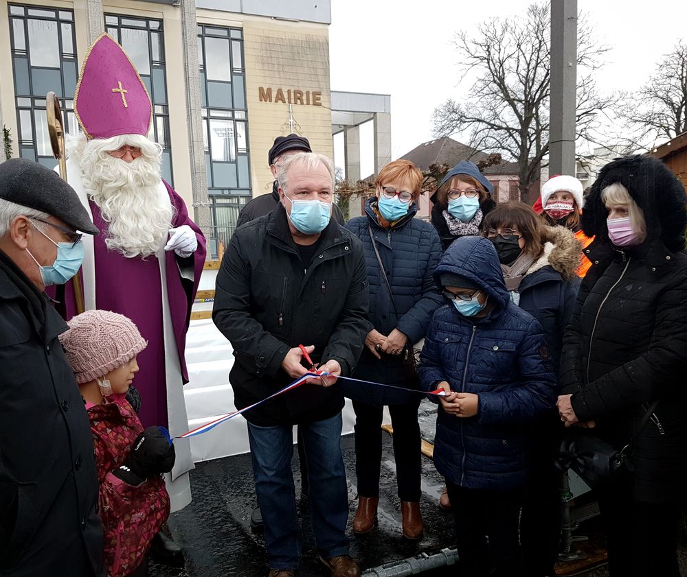 Le maire Yves Ludwig entouré de membres du conseil municipal a accueilli Saint Nicolas cet après-midi. Ensemble ils ont officiellement inauguré l’édition 2021 du marché de Noël de Stiring-Wendel !