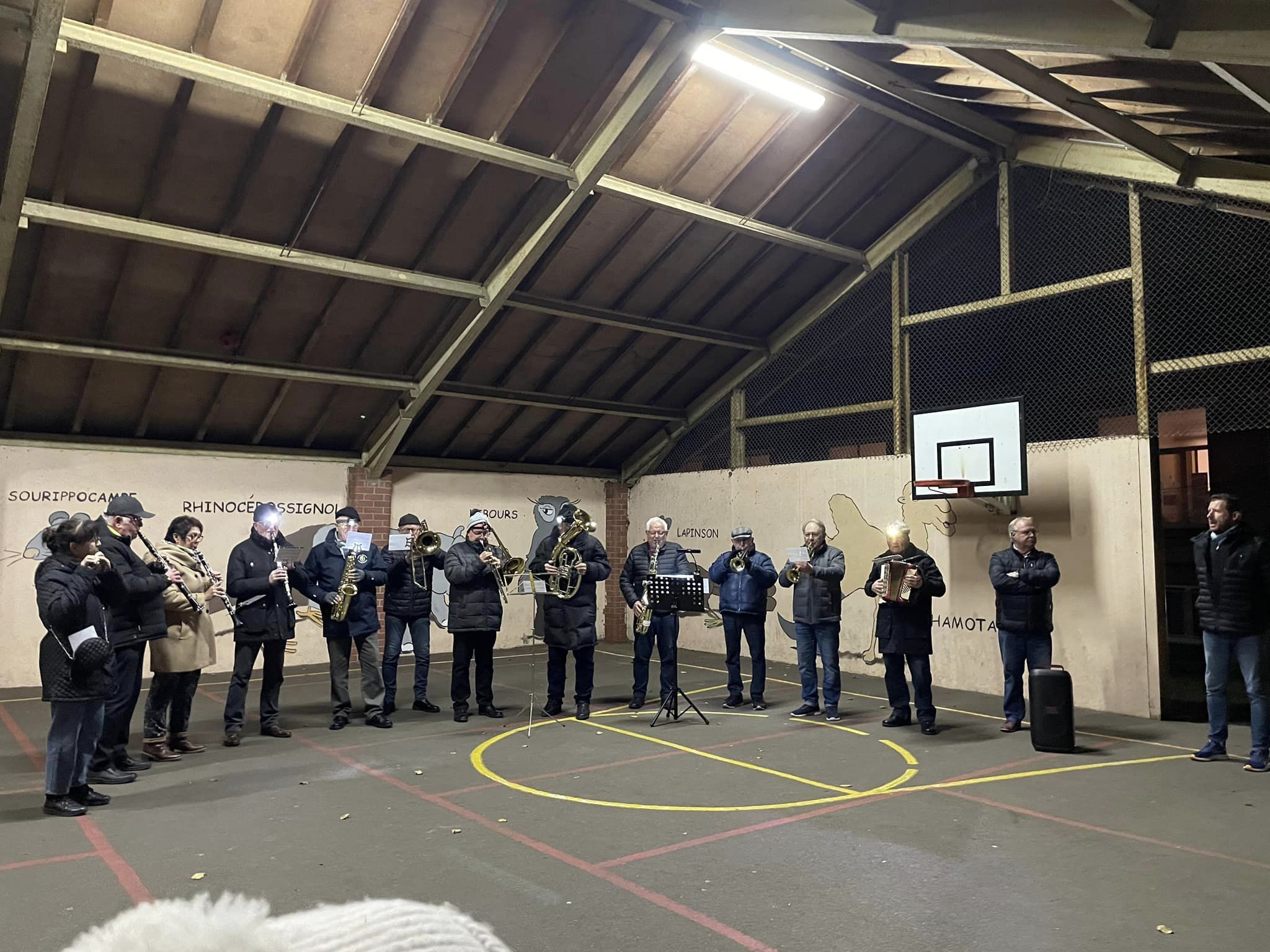 Puis le cortège a repris la route direction l’école où des membres de l’harmonie municipale de Stiring-Wendel les ont accueillis en musique.