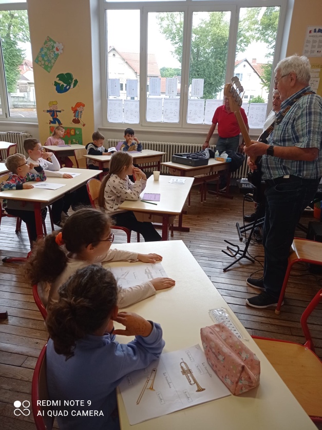 Les élèves ont pu apprendre les différentes parties des instruments de musique et même les essayer. Une belle matinée intergénérationnelle autour de la musique qui se poursuivra le 25 Juin avec l’école de la Verrerie Sophie et du Habsterdick.