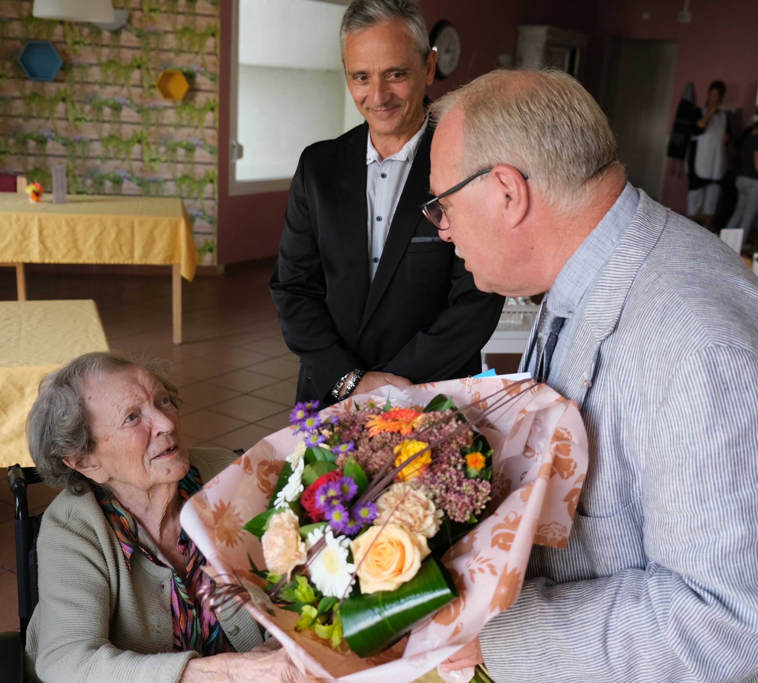 Monsieur le Maire Yves LUDWIG accompagné de madame la première adjointe et vice-présidente du Conseil départemental Elisabeth HAAG et de monsieur Grégoire LEININGER, conseiller municipal se sont rendus à l’EHPAD « Les Platanes » afin de féliciter Madame BURGER au nom de la municipalité.