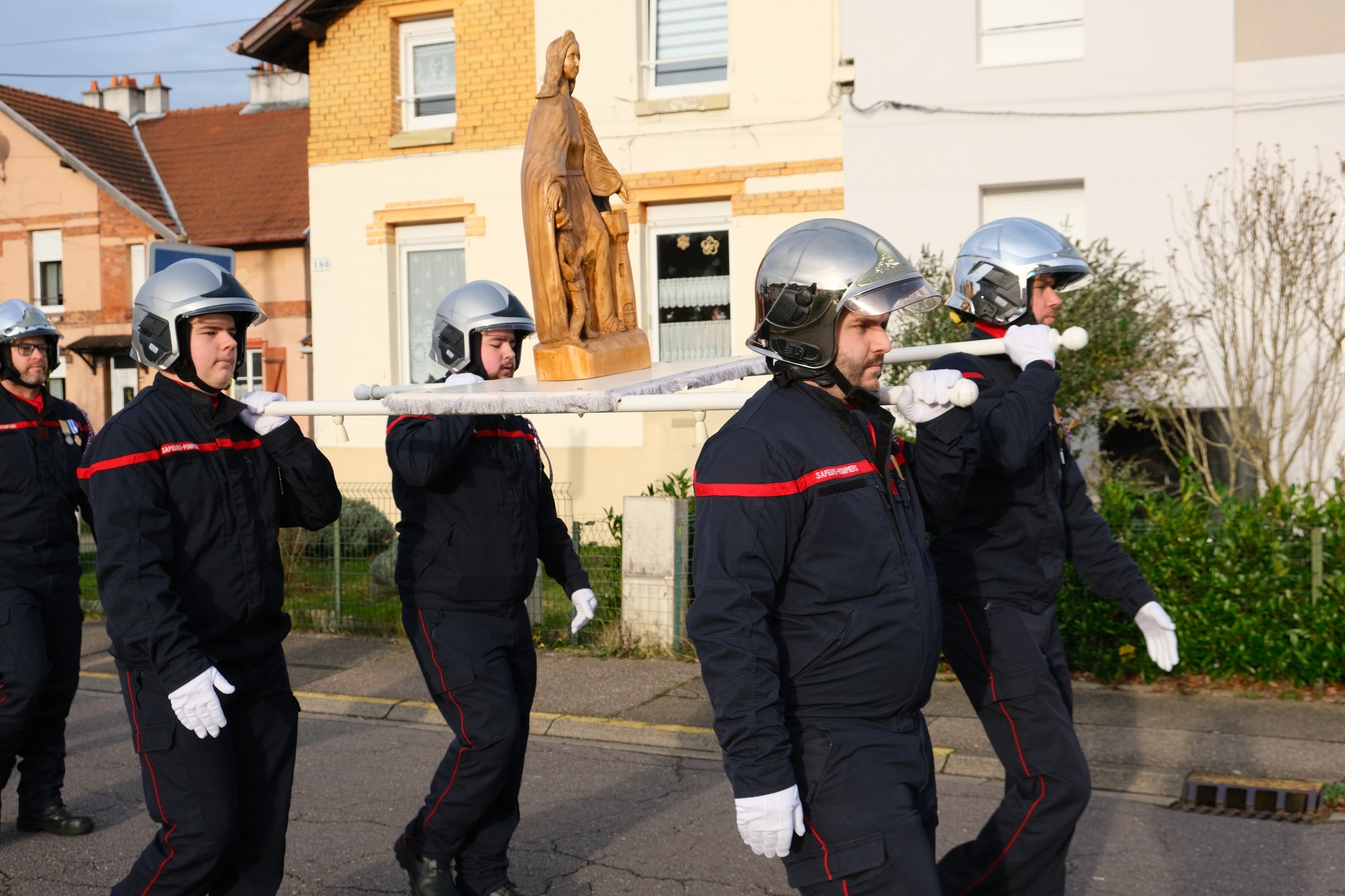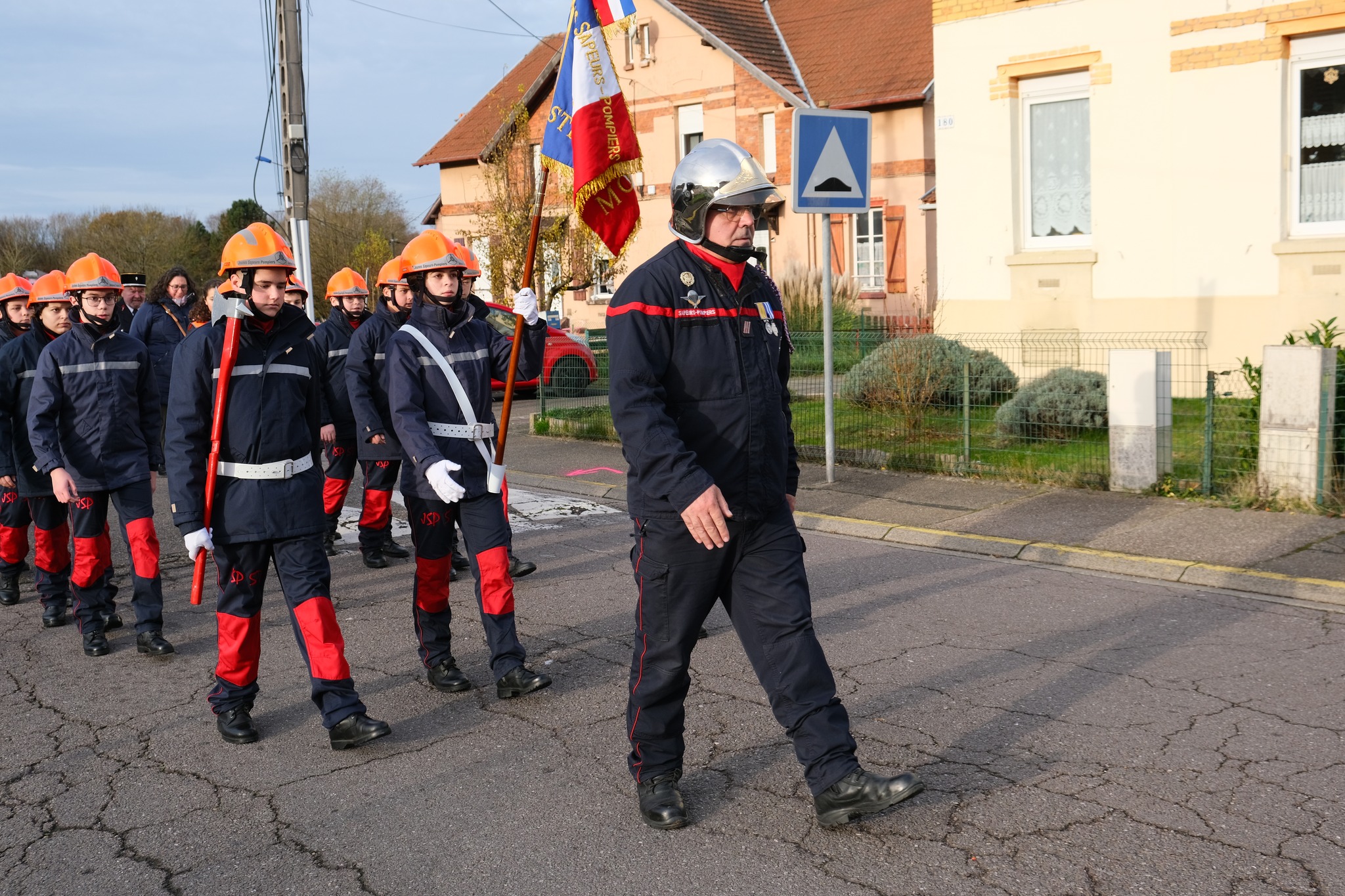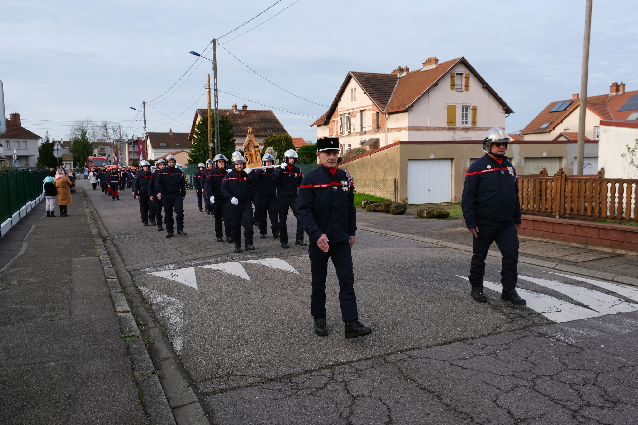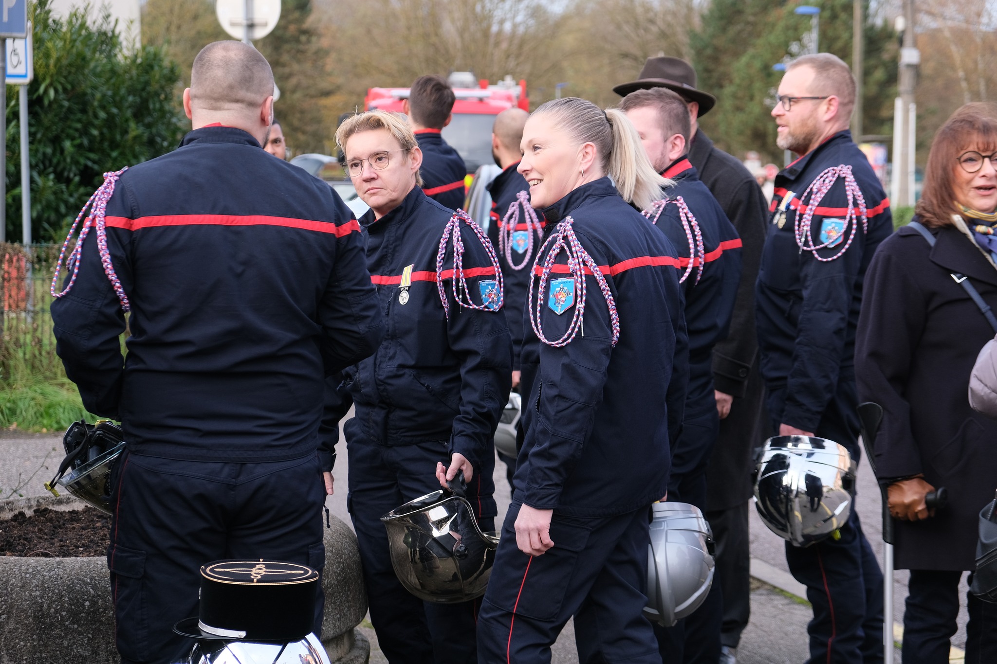 Ce dimanche, les musiciens de l’harmonie municipale et les sapeurs-pompiers, accompagnés de la section des jeunes sapeurs-pompiers et des cadets de la sécurité civile du collège Untertseller ont répondu à l’invitation de la municipalité pour honorer ensemble, leurs saintes patronnes respectives, sainte Cécile et sainte Barbe.
