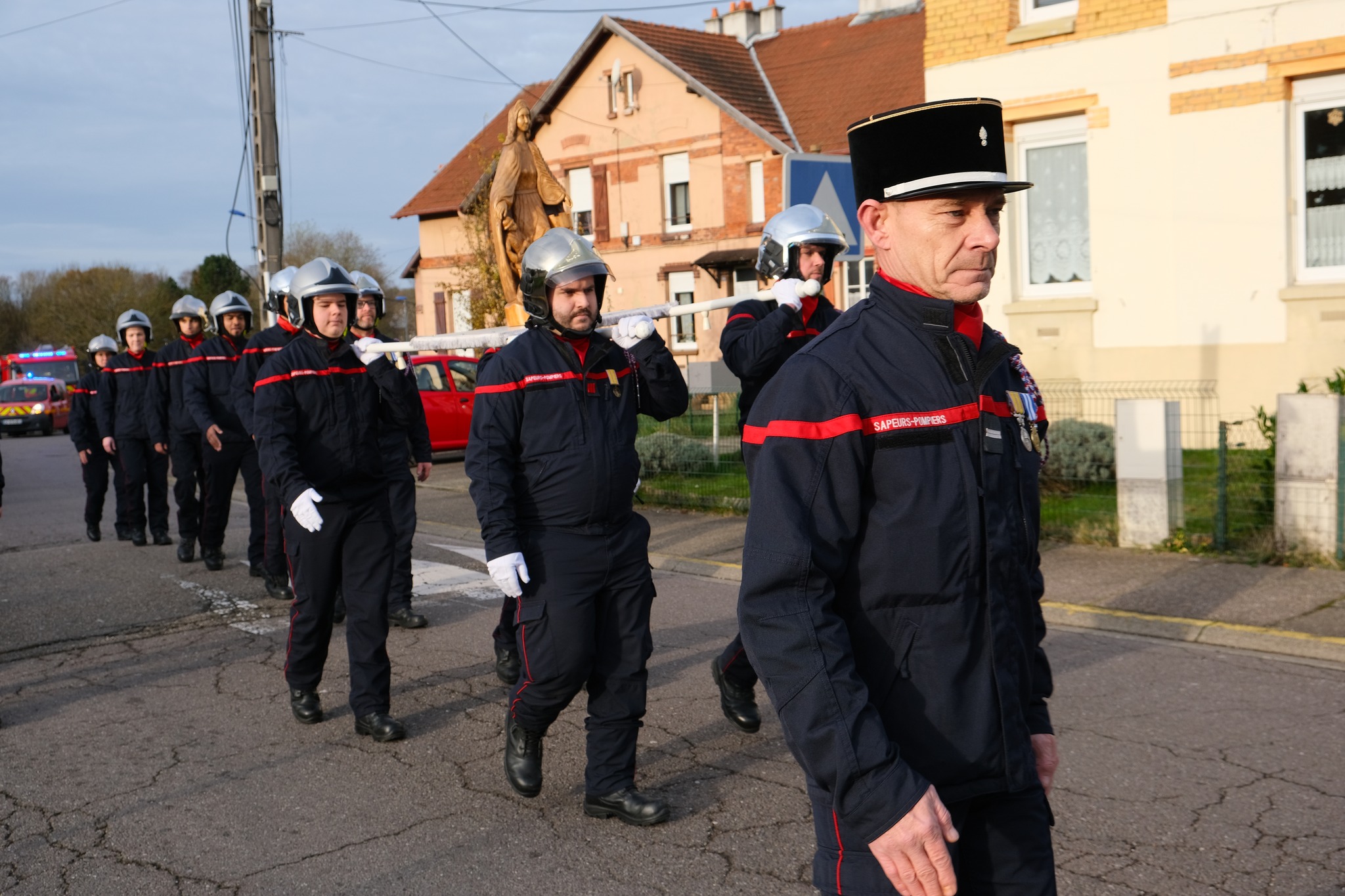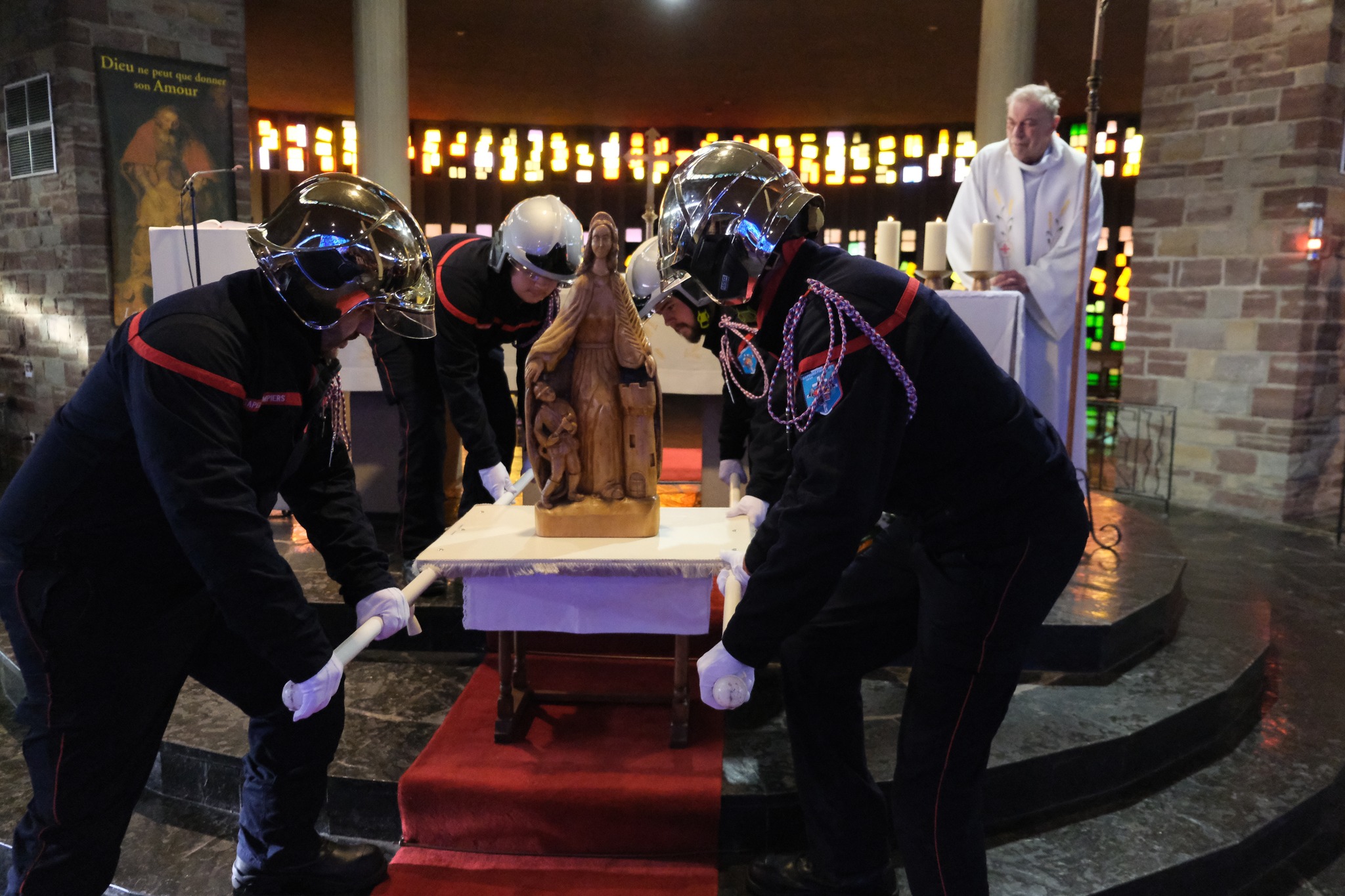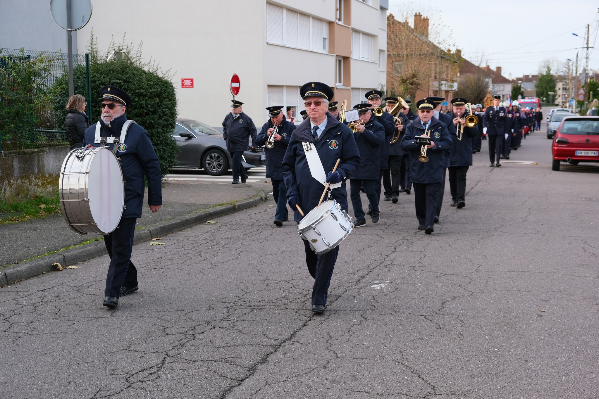 Ce dimanche, les musiciens de l’harmonie municipale et les sapeurs-pompiers, accompagnés de la section des jeunes sapeurs-pompiers et des cadets de la sécurité civile du collège Untertseller ont répondu à l’invitation de la municipalité pour honorer ensemble, leurs saintes patronnes respectives, sainte Cécile et sainte Barbe.