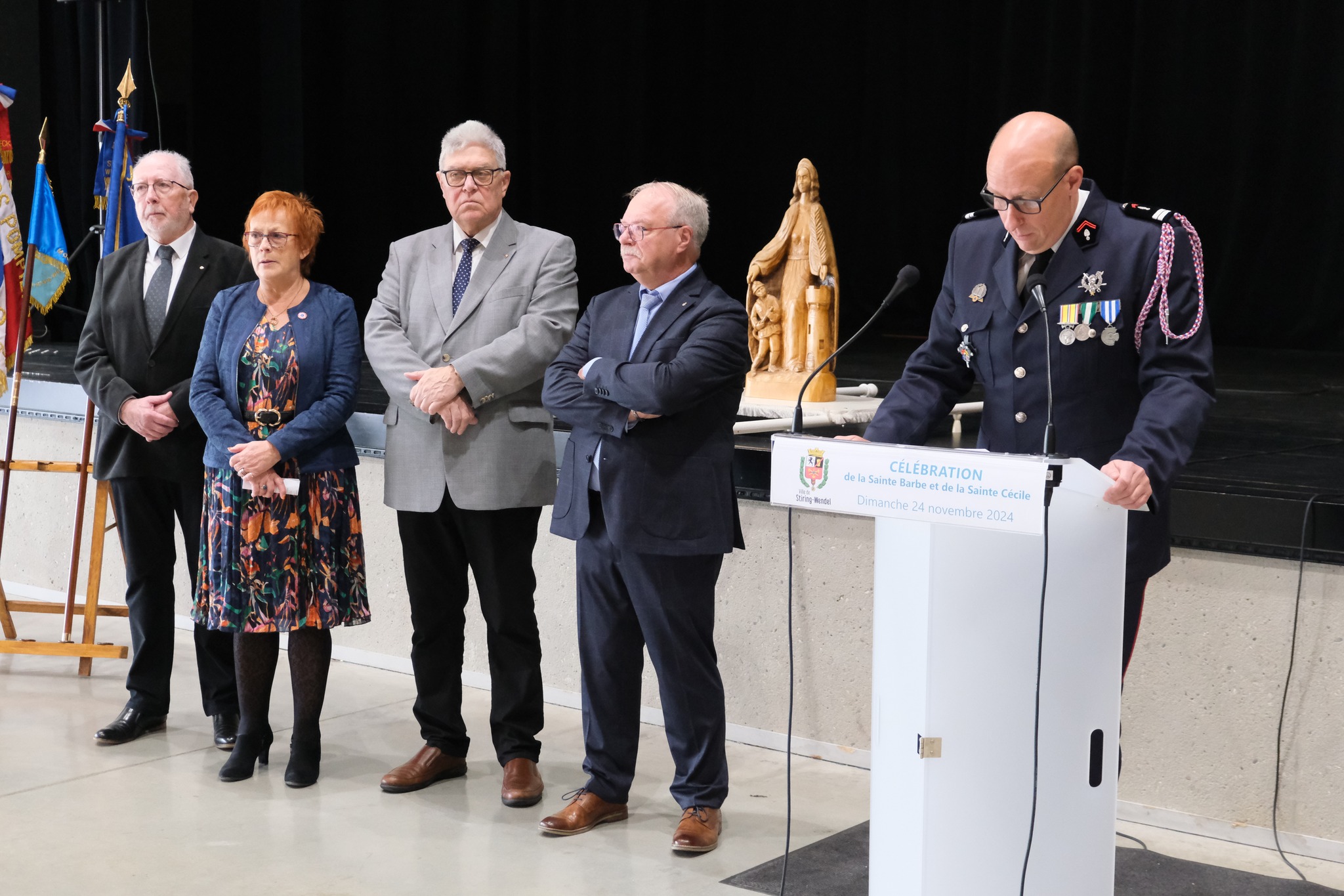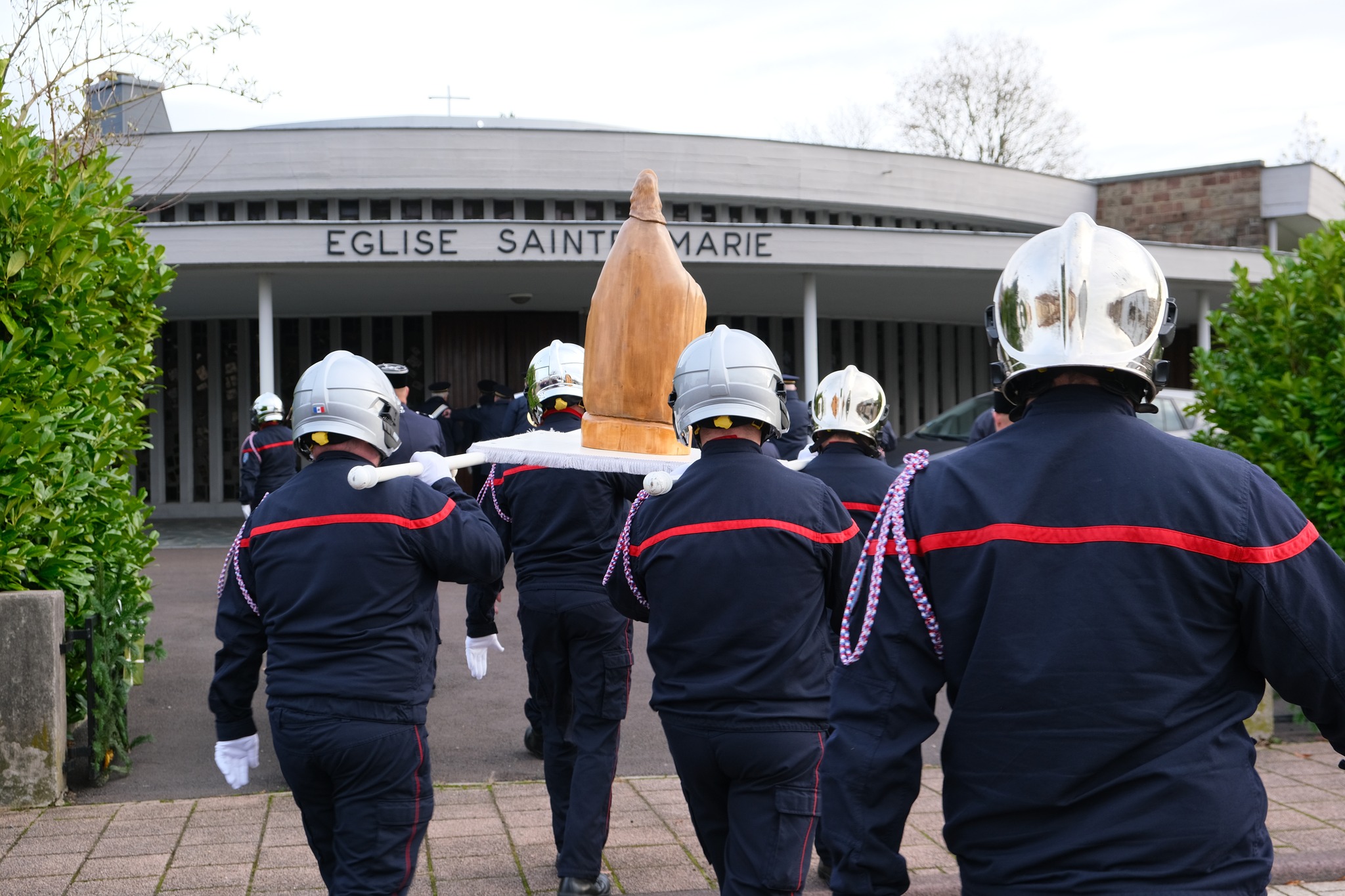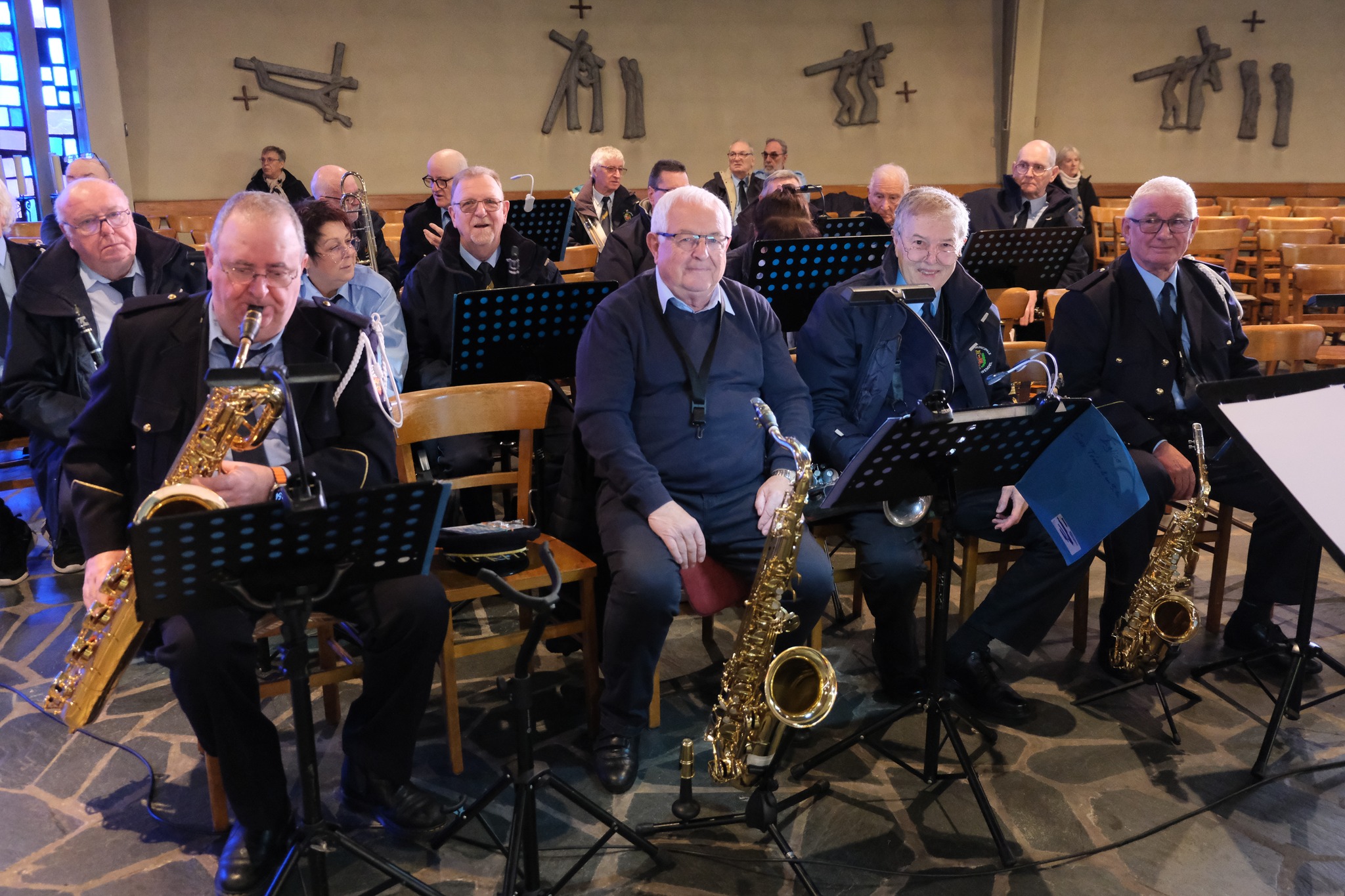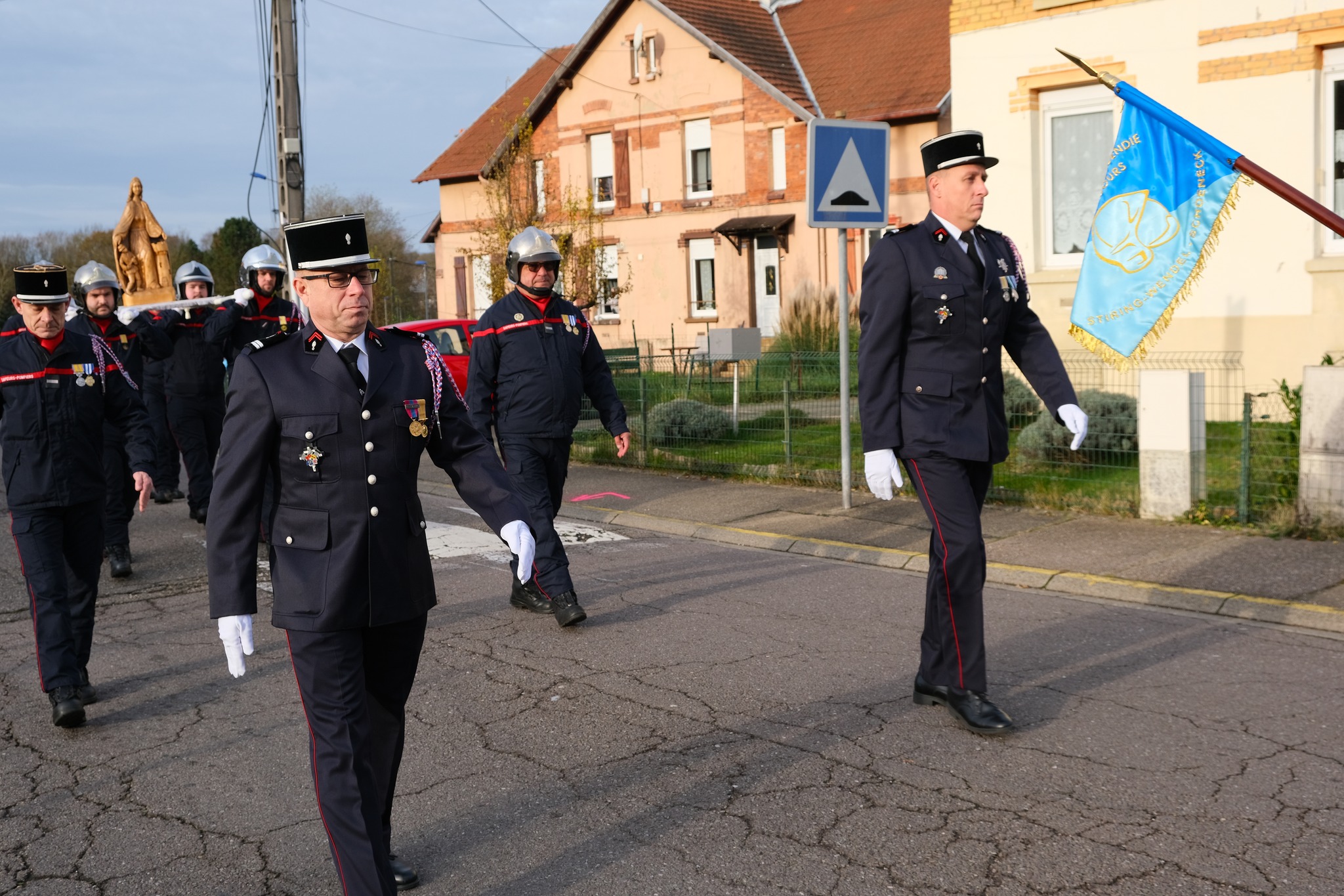 Ce dimanche, les musiciens de l’harmonie municipale et les sapeurs-pompiers, accompagnés de la section des jeunes sapeurs-pompiers et des cadets de la sécurité civile du collège Untertseller ont répondu à l’invitation de la municipalité pour honorer ensemble, leurs saintes patronnes respectives, sainte Cécile et sainte Barbe.