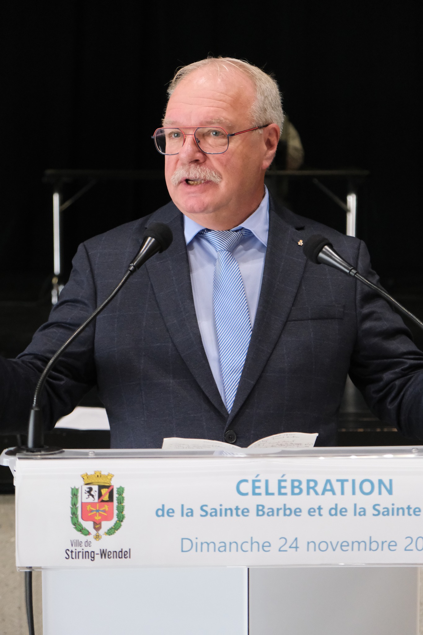 Dans son allocution, le maire Yves LUDWIG a chaleureusement remercié les musiciens de l’harmonie municipale pour leur présence aux manifestations patriotiques, aux fêtes et cérémonies officielles ainsi que pour leurs concerts annuels à Stiring-Wendel et au-delà. Il les a également félicité pour leur investissement auprès des écoles à travers plusieurs projets tout rappelant la signature très récente d’une convention avec le Conservatoire Communautaire de Forbach Porte de France visant à encourager les jeunes talents en leur permettant de bénéficier de tarifs préférentiels à l’école de musique. Elle inclut également la prise en charge de la location d’un instrument par l’harmonie municipale.