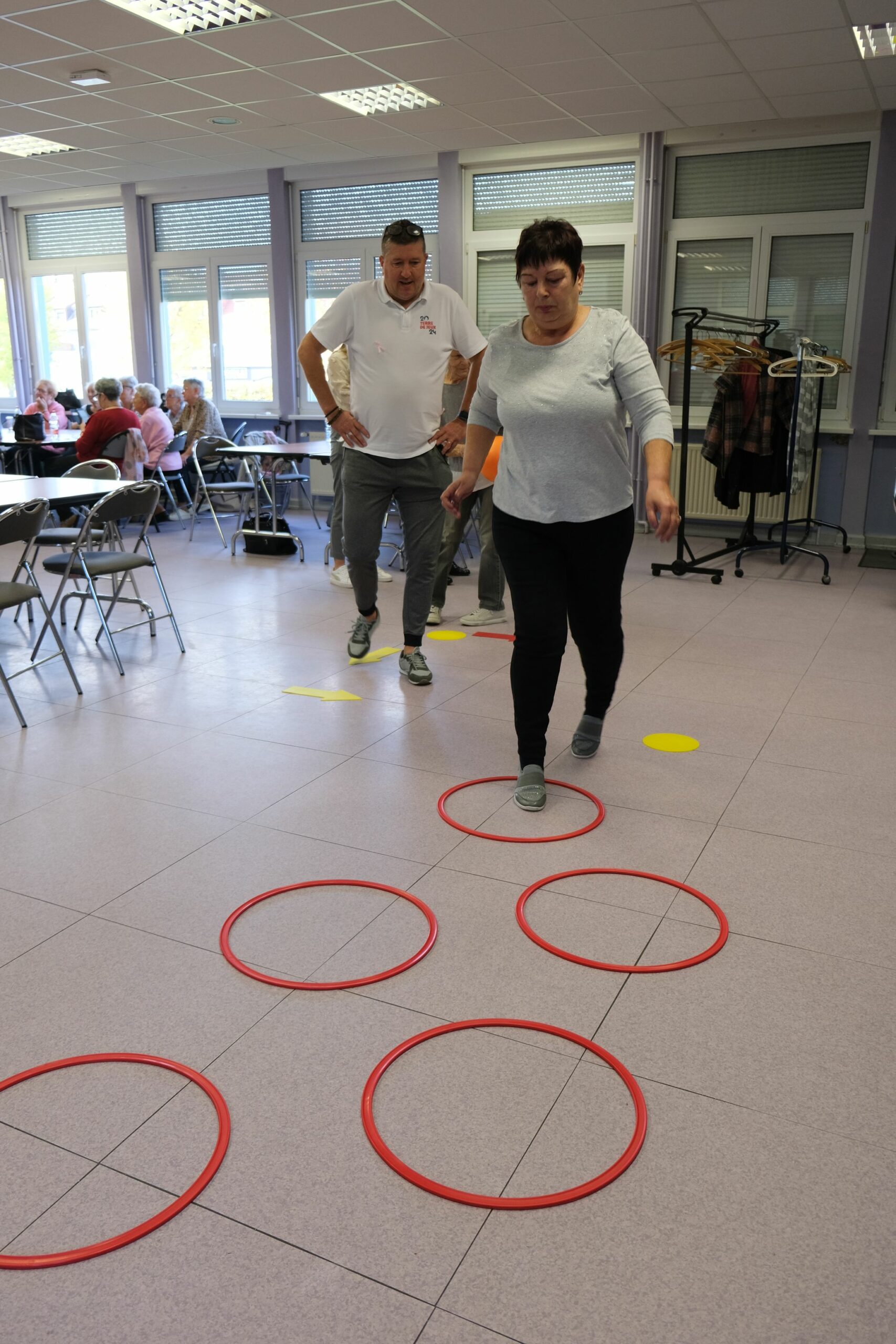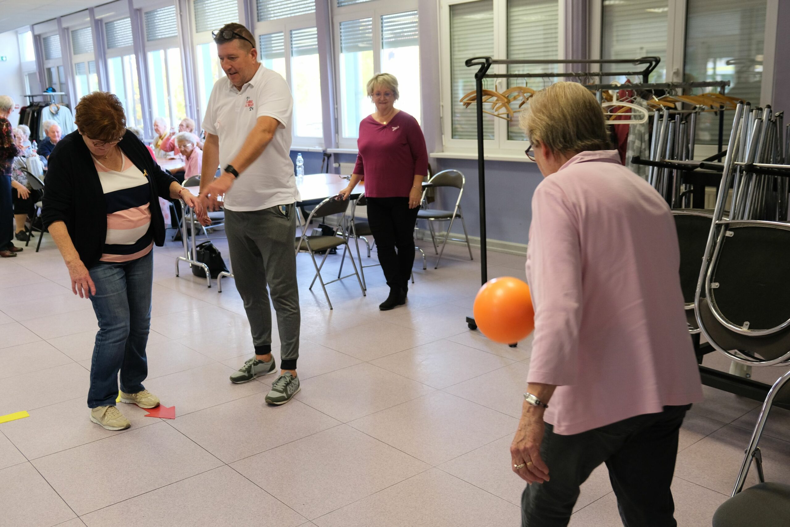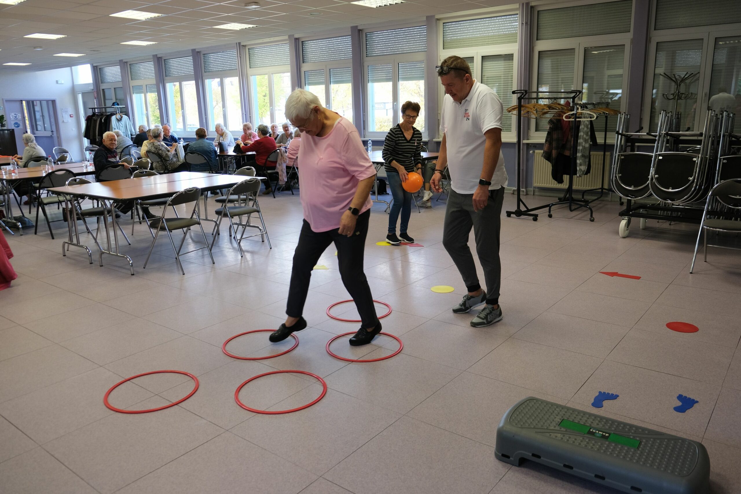 Après une marche dans le quartier du Habsterdick, Hervé Grosius et Sandra Brastenhoffer du service des sports de la Ville de Stiring-Wendel (récemment formés Éducateurs Sportif Sport-Santé) ont mis en place plusieurs ateliers destinés à maintenir et renforcer l’équilibre, la souplesse, la coordination…)