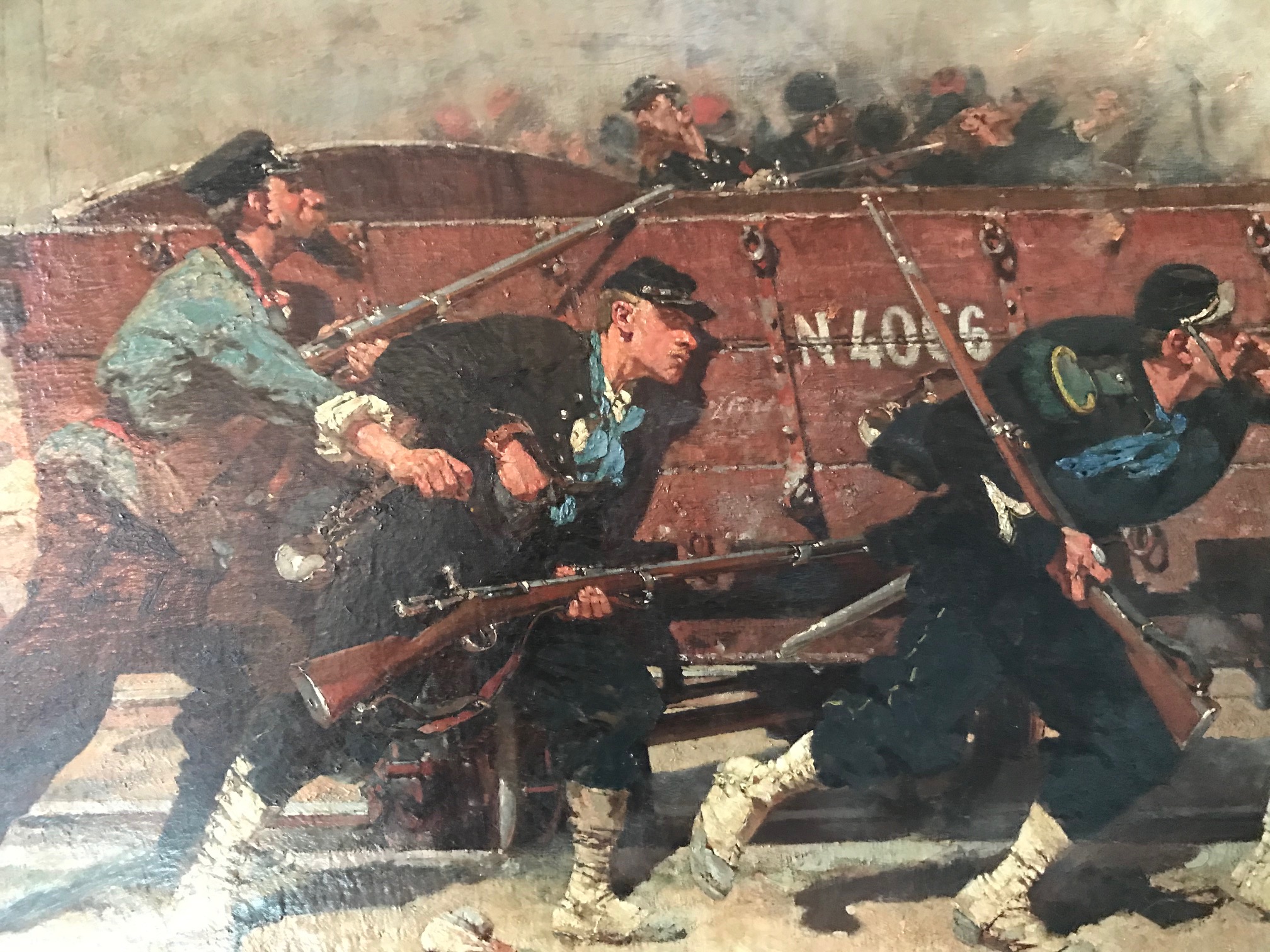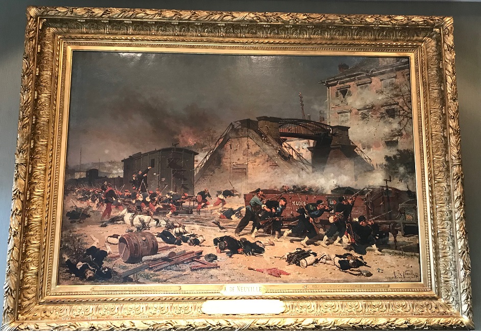 Ce tableau représente une scène de la terrible bataille du 6 août 1870. Elle se déroule à l’emplacement de l’actuelle « coulée verte », le long de la voie ferrée. Les Détails du tableau sont à retrouver dans la vidéo en bas de page.