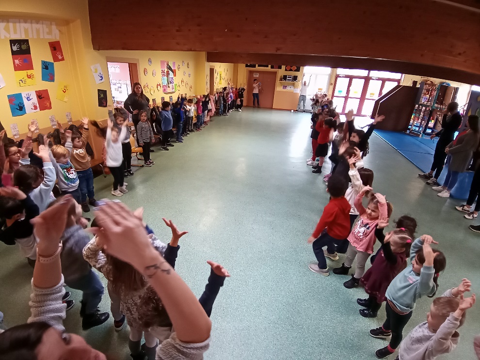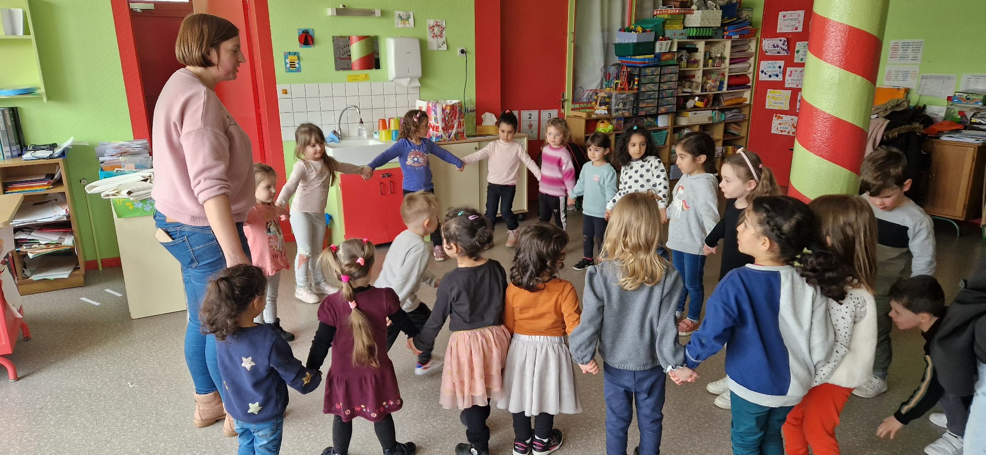 Jeudi 6 avril a eu lieu une rencontre biculturelle entre les élèves de l’école maternelle du Vieux Stiring et celle de Verrerie Sophie.