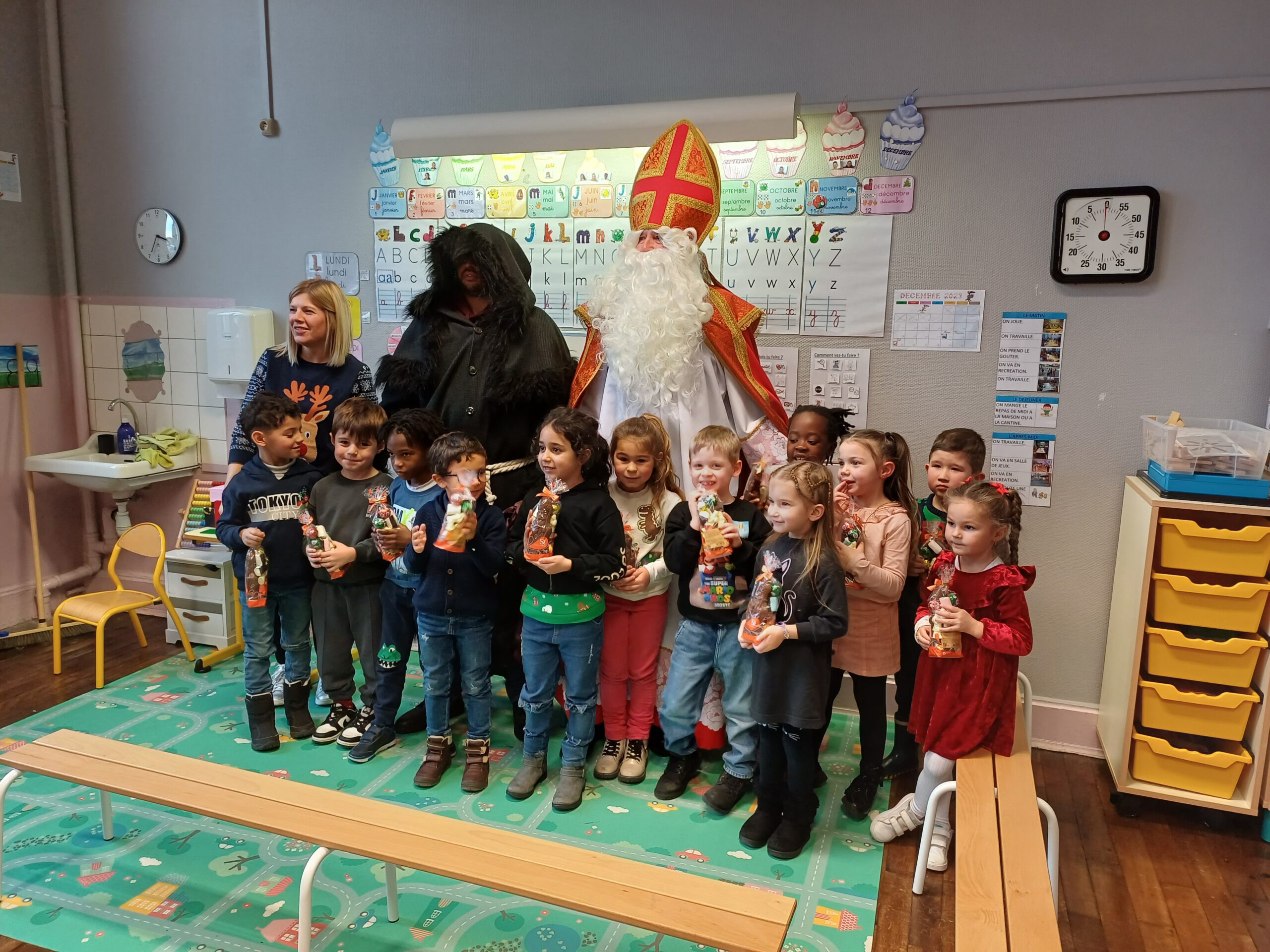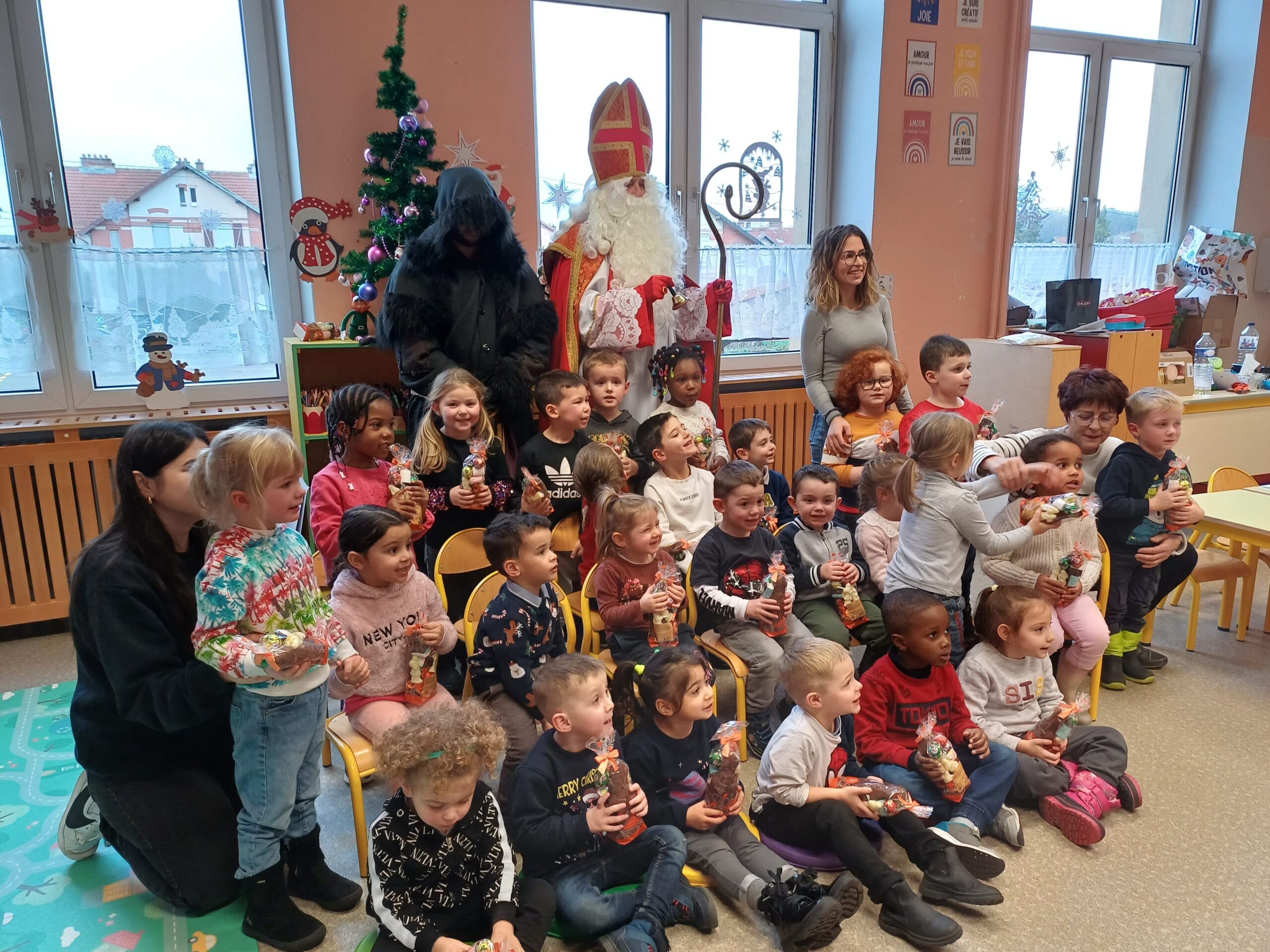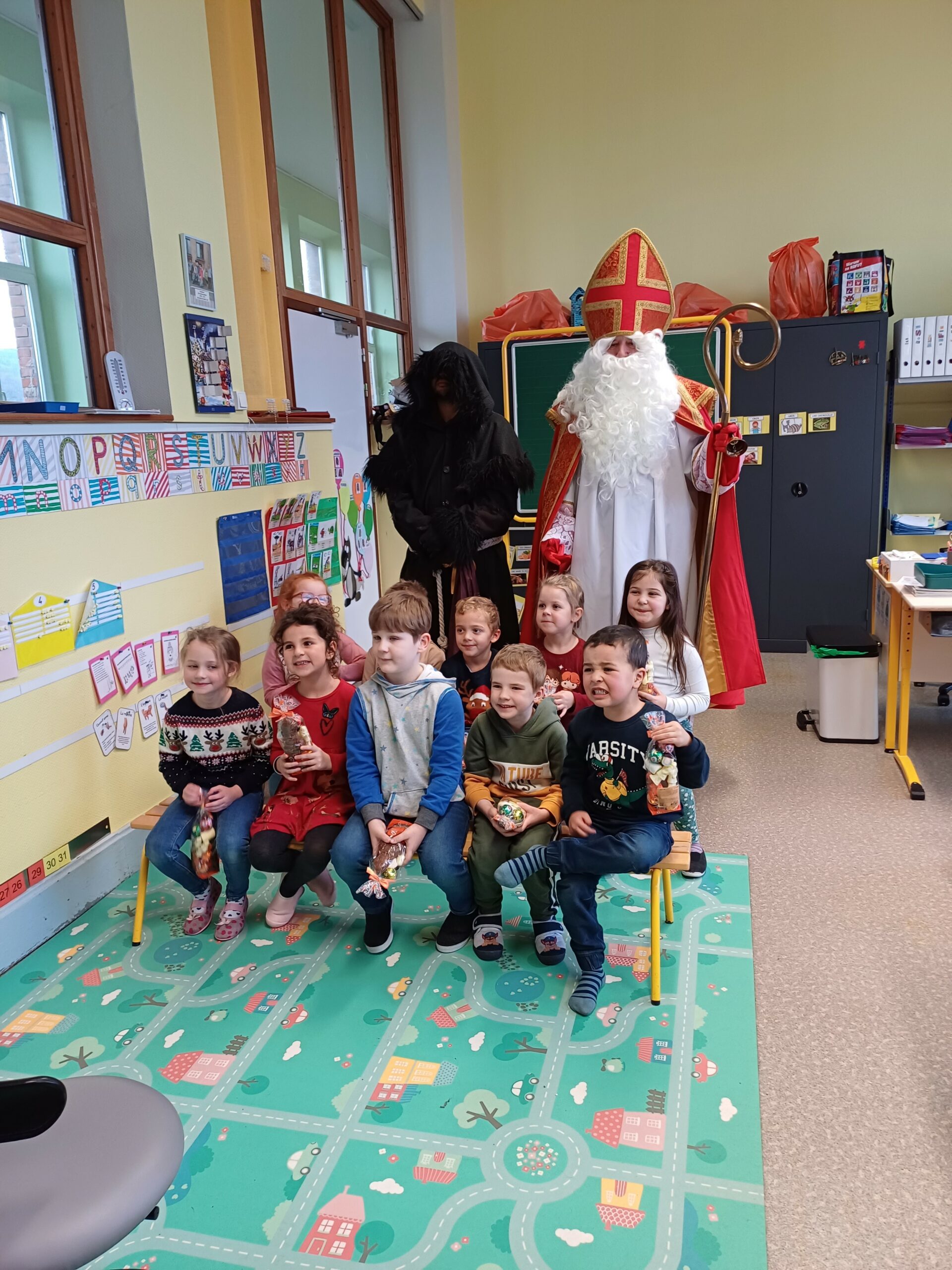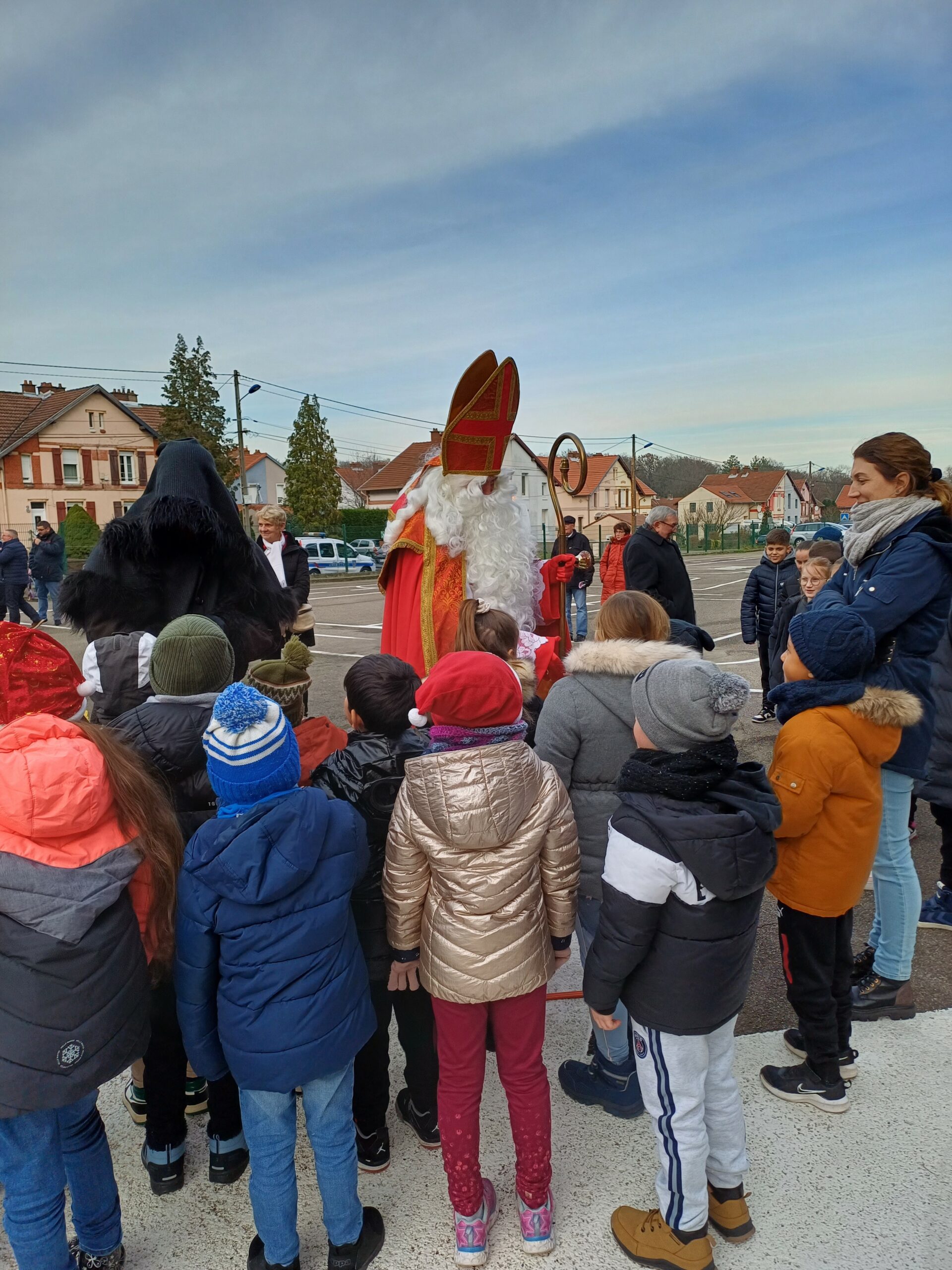 Comme le veut la tradition, ce jeudi 7 décembre St Nicolas, accompagné du père Fouettard, de M. le Maire et des membres du conseil municipal, a rendu visite aux écoliers de Stiring-Wendel pour leur offrir des sachets de chocolats puisqu’ils ont tous été très sages… ou presque !
