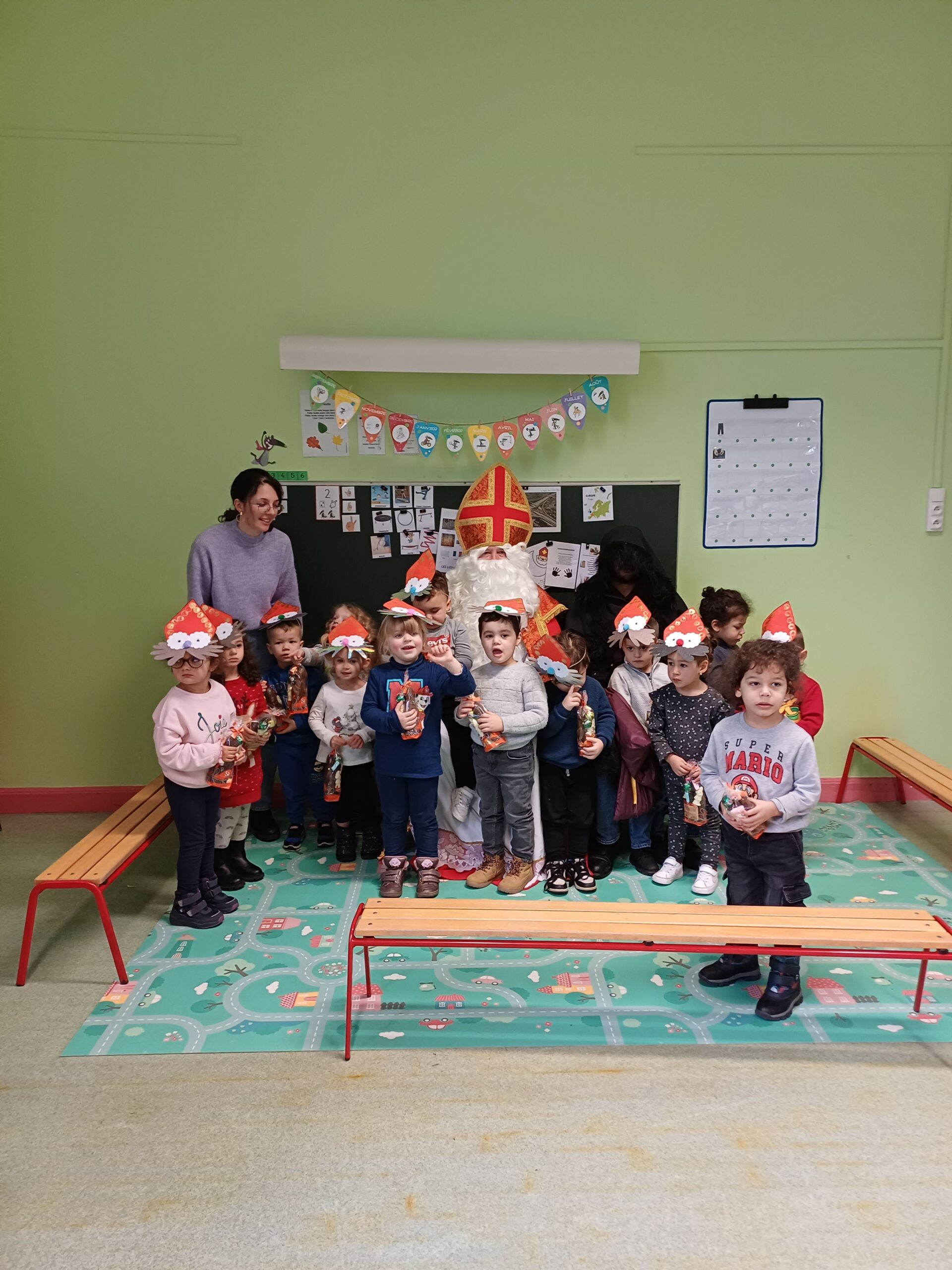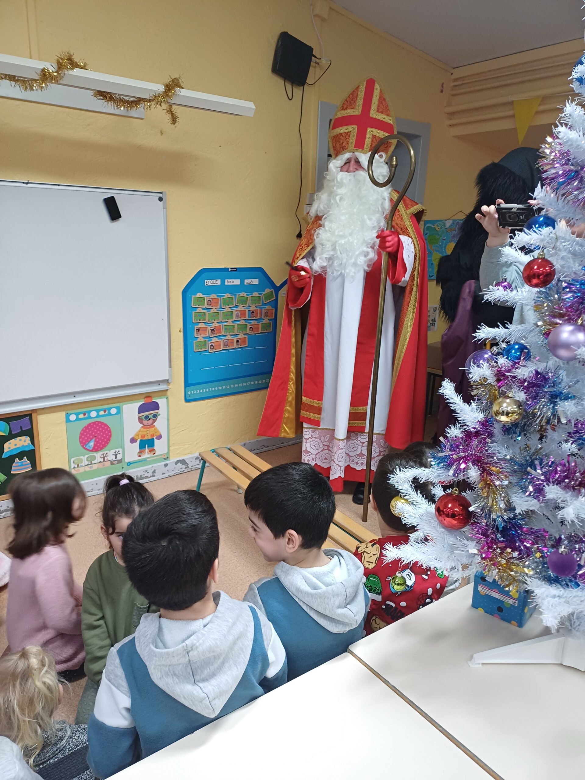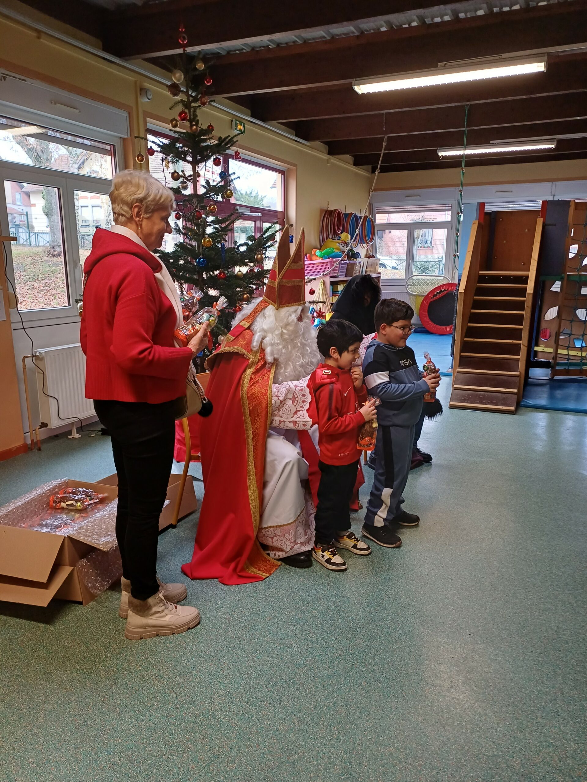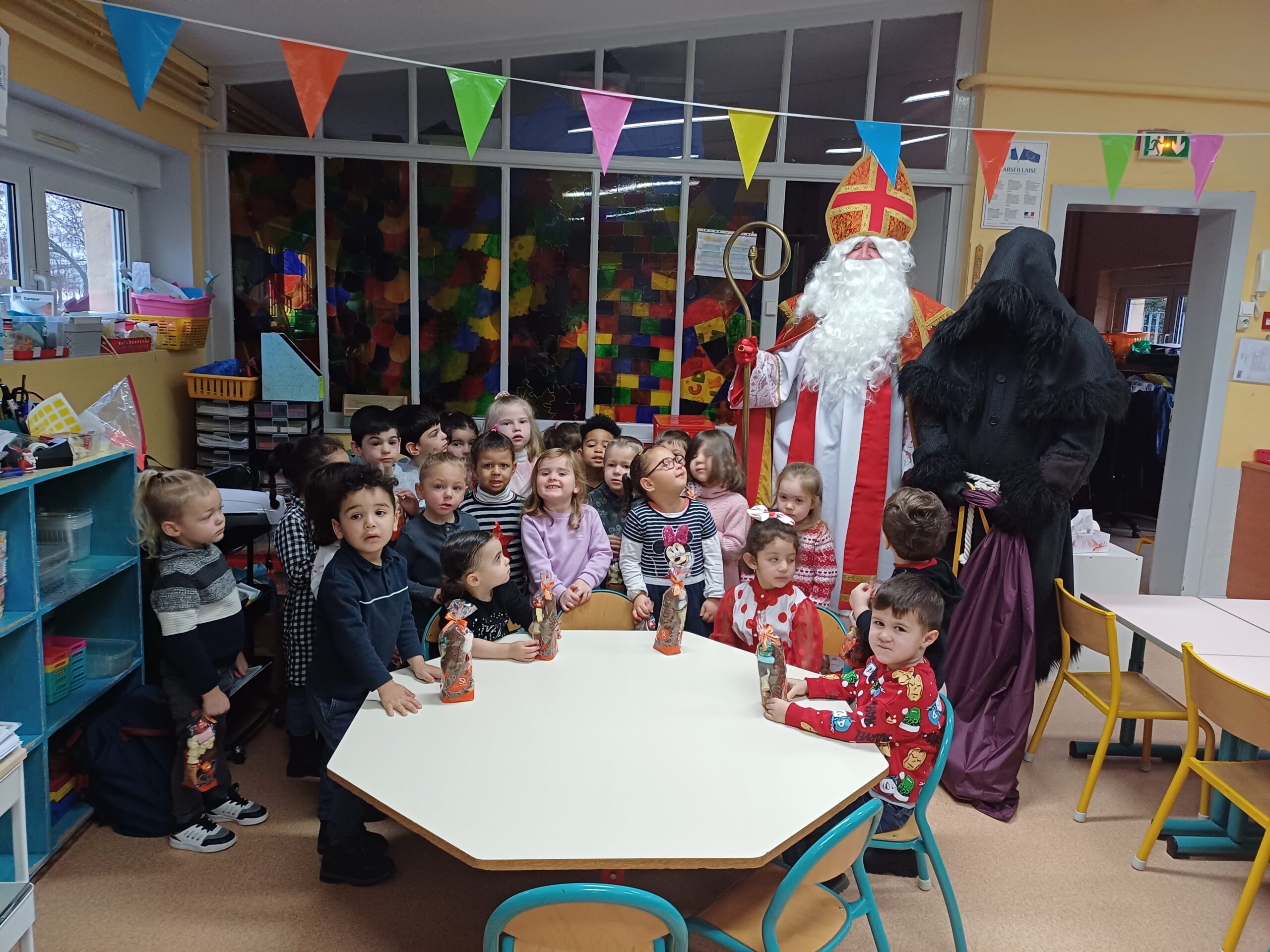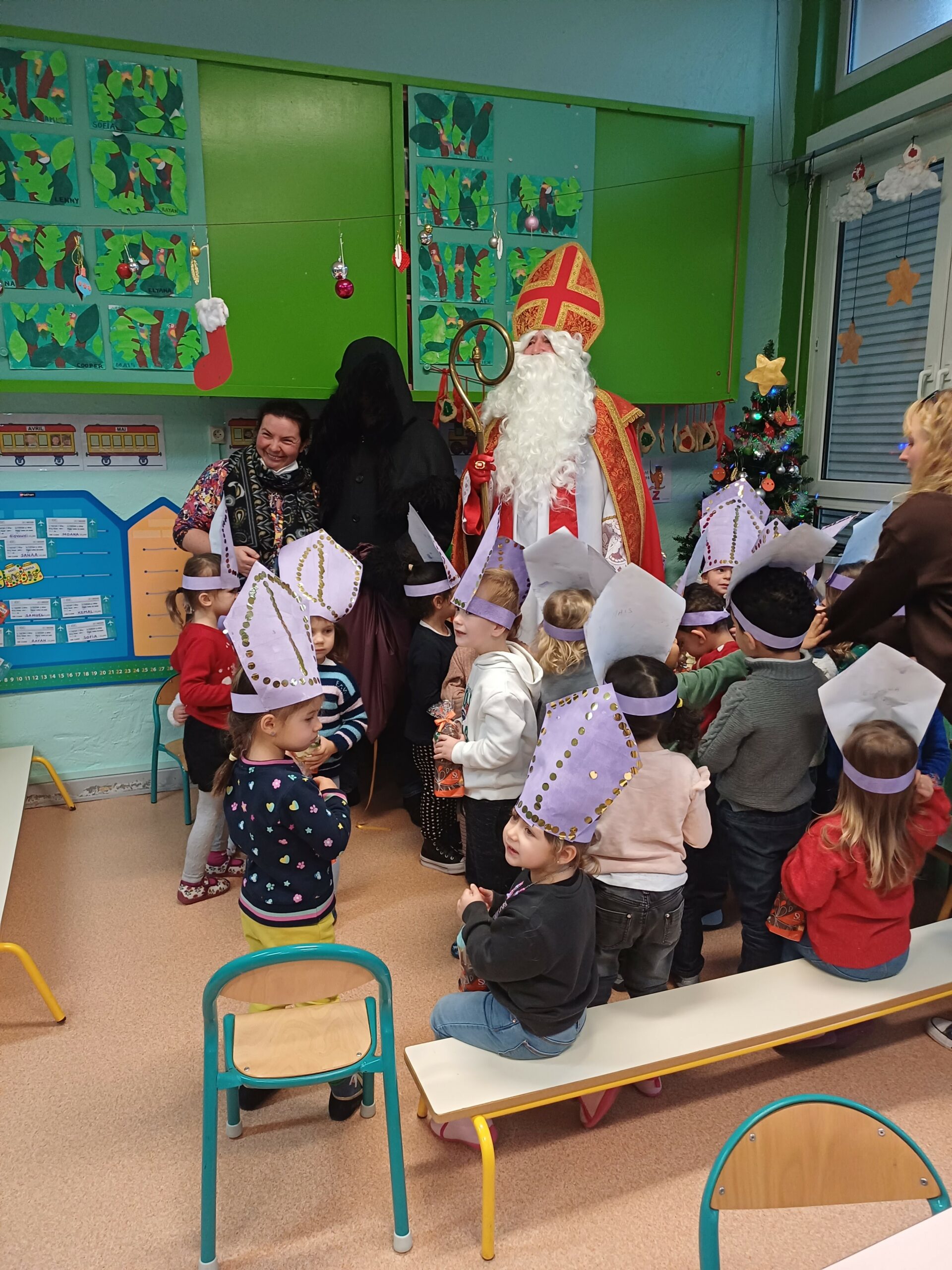 Comme le veut la tradition, ce jeudi 7 décembre St Nicolas, accompagné du père Fouettard, de M. le Maire et des membres du conseil municipal, a rendu visite aux écoliers de Stiring-Wendel pour leur offrir des sachets de chocolats puisqu’ils ont tous été très sages… ou presque !