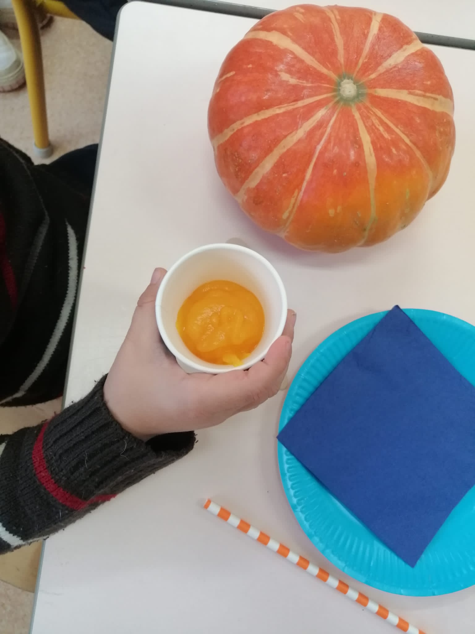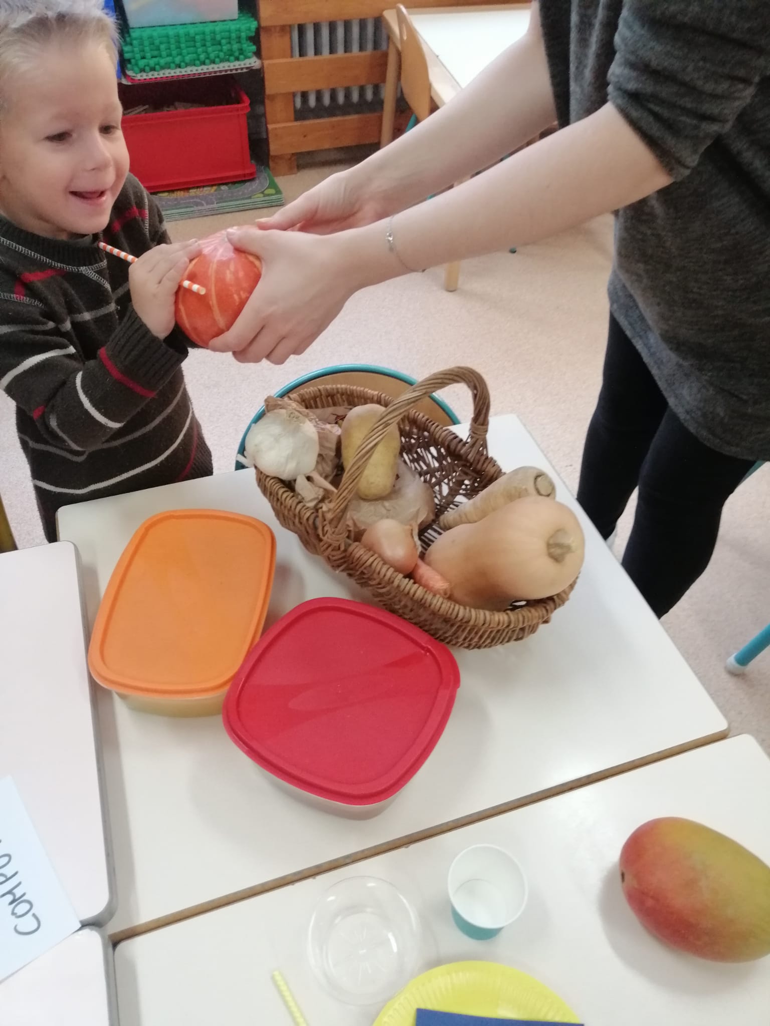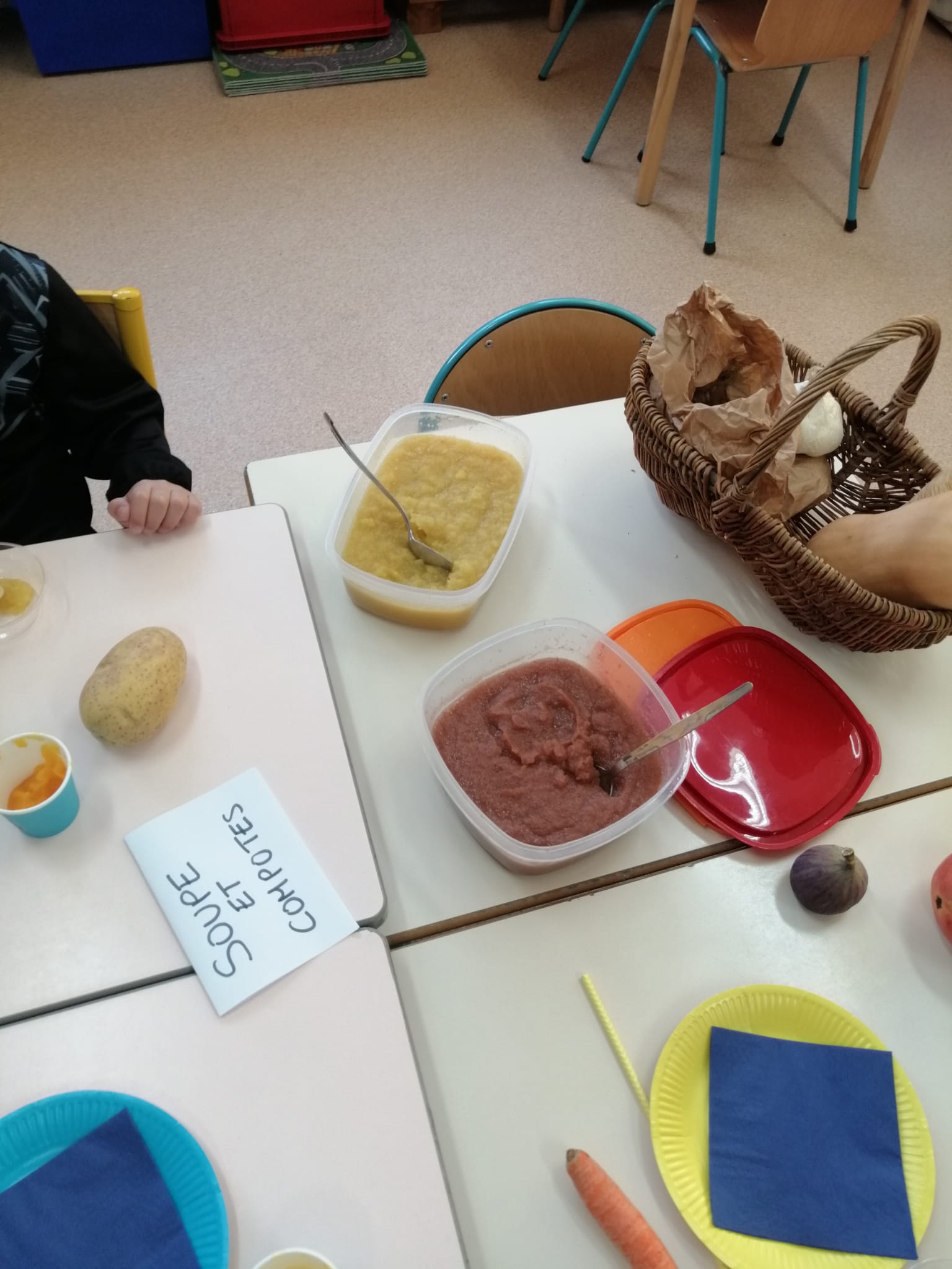 -un atelier compote mangues /figues et velouté : les enfants devaient trouver quels fruits ou légumes ils goutaient.