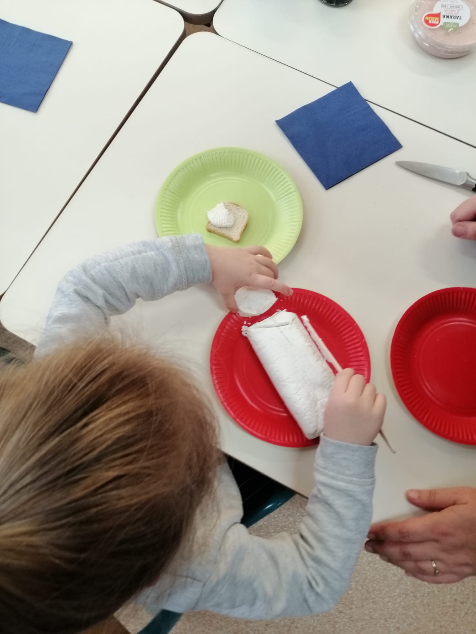 – un atelier toast : Ils ont tartiné et gouté du fromage frais de chèvre, du saumon fumé, des œufs de Lump et du tarama.