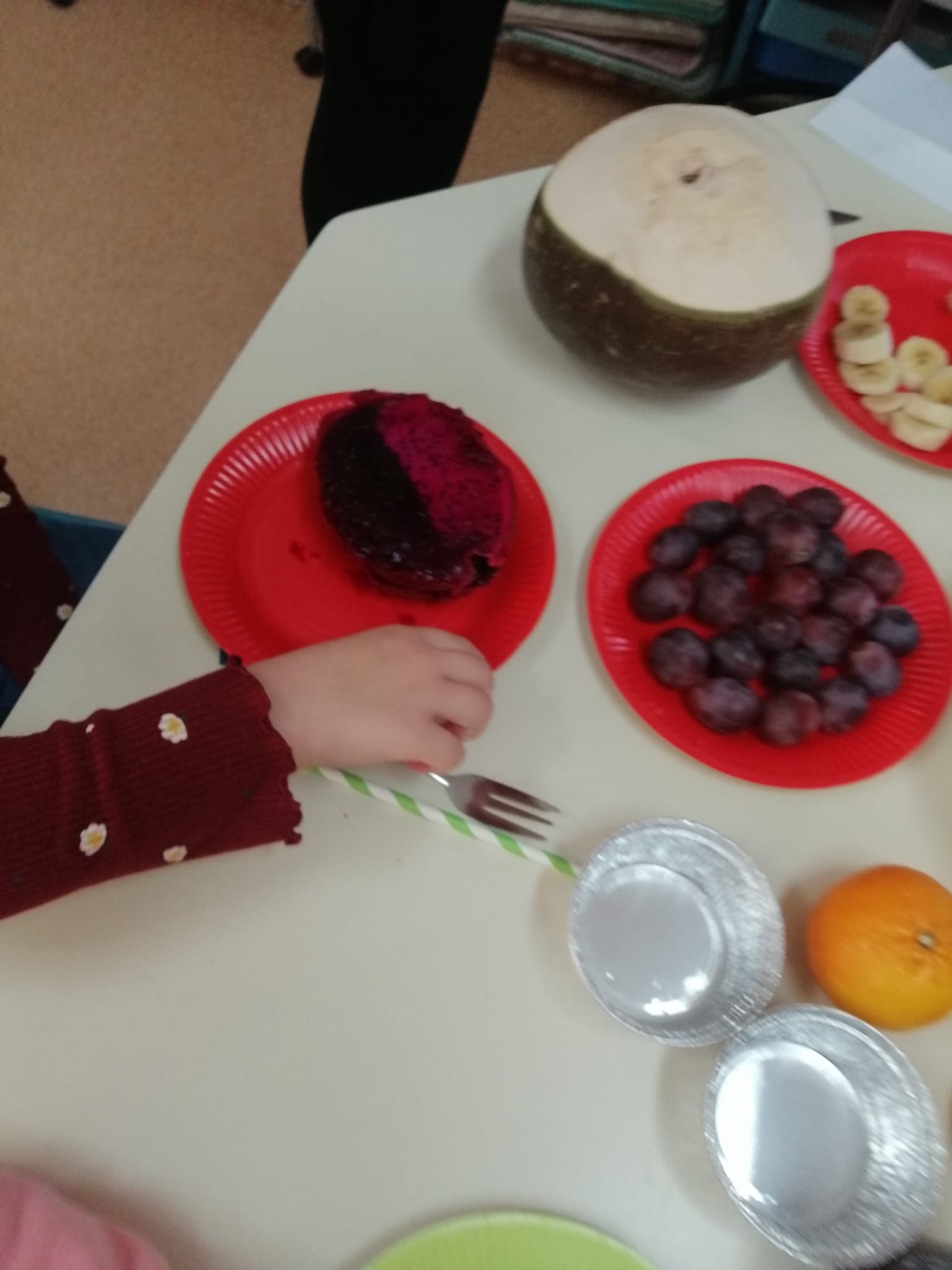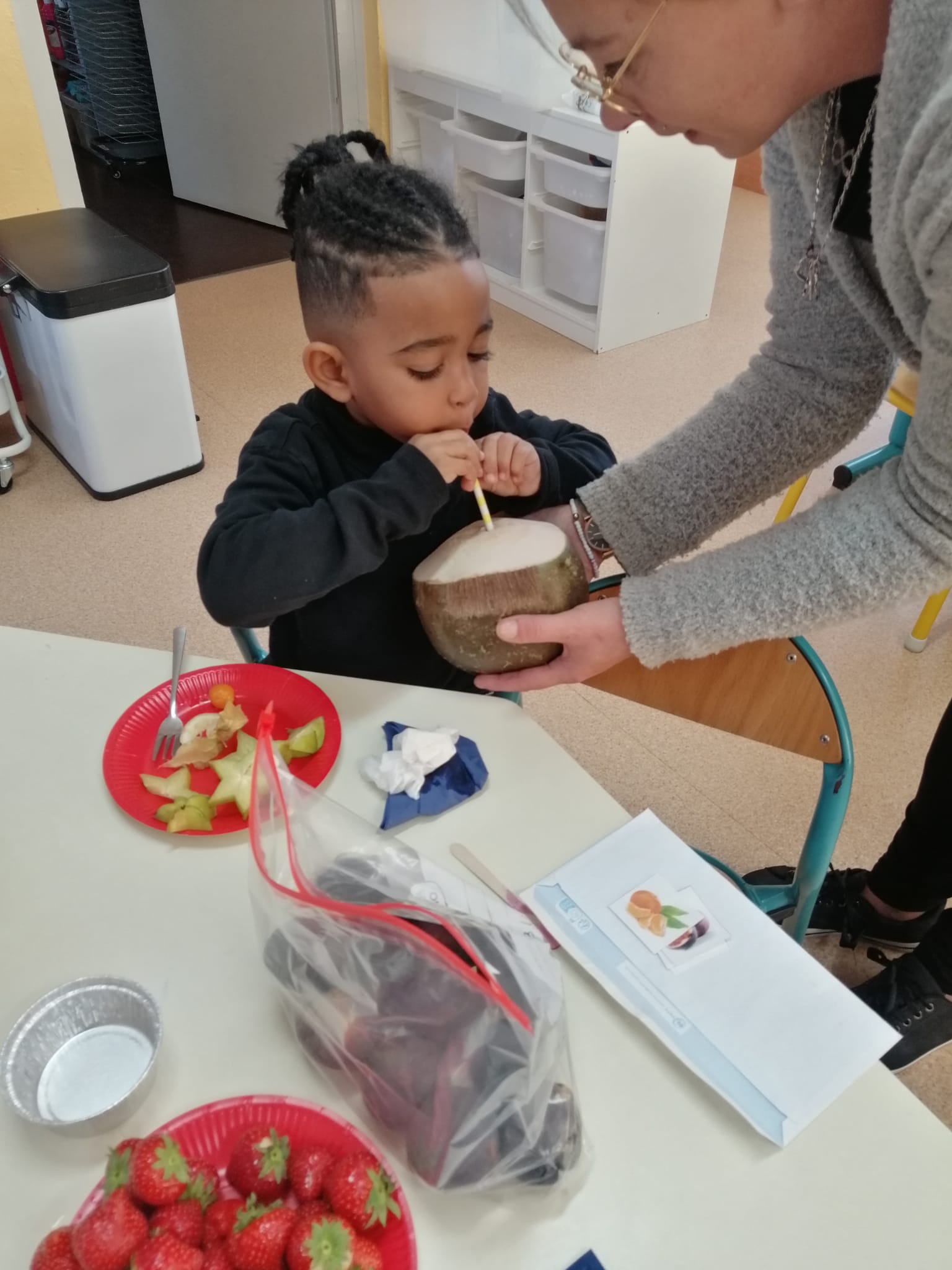 – fondu chocolat: Ils devaient trouver les fruits correspondant à l image et déguster des fruits qu’ils n’ont pas forcément l’habitude de manger.