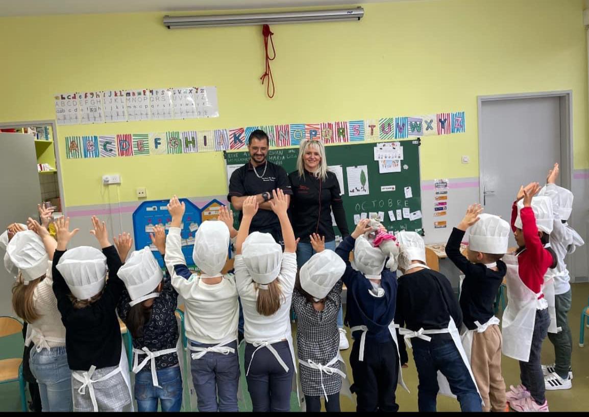 – Dans la classe de petite section, des ateliers en collaboration avec M. Cerati et Mme Bojoly, propriétaires de la Brasserie chez Alex rue Saint François à Stiring-Wendel, ainsi que leur cheffe cuisinière.